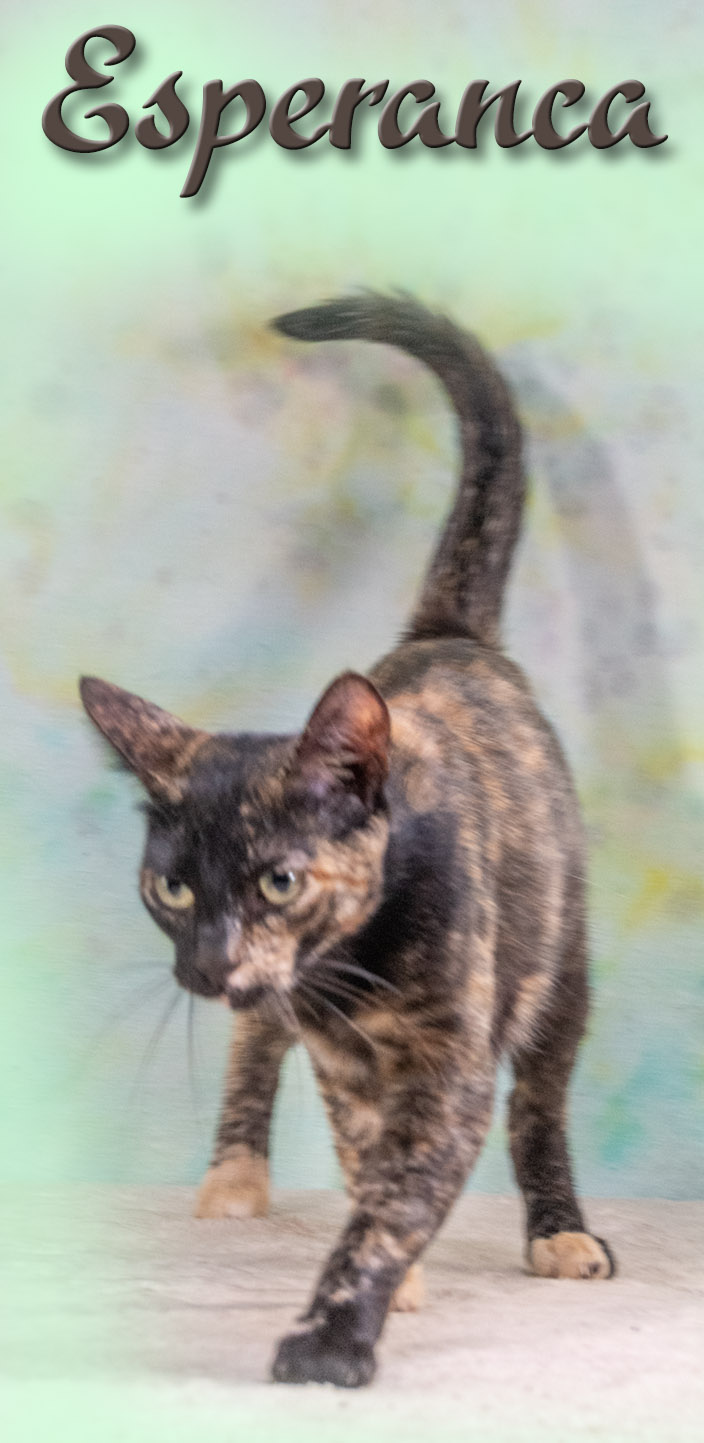 Dürfen wir vorstellen, Esperanca, eine Mixkatze, geboren 2022. Sie wurde ausgesetzt auf der Straße aufgefunden und lebt zur Zeit auf einer privaten Pflegestelle in Portugal und möchte sich jetzt auf die Suche nach einem neuen Zuhause machen.
