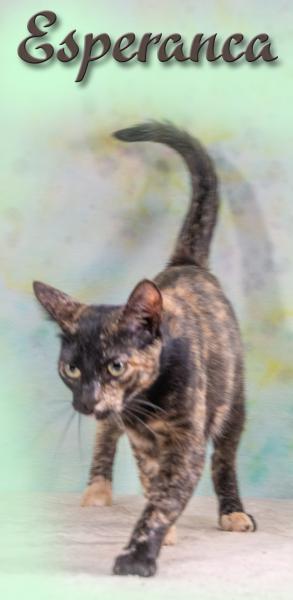 Esperanca ist kastriert, voll geimpft, gechipt und negativ auf Katzenleukose und FIV getestet.