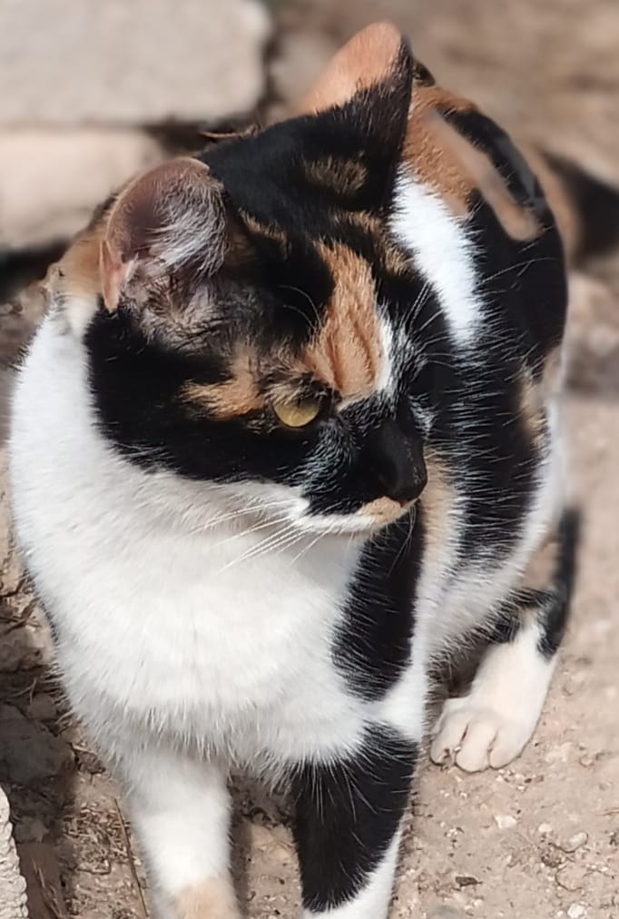 Die hübsche Tricolor Fiona (ca geb 09/24) wurde im Sommer mit ihren vier Babies auf der Strasse aufgefunden und zu Maria Gracia’s privat geführtem Tierheim gebracht. Leider sind ihre Jungen alle einem Virus erlegen und haben die harte Zeit auf der Strasse letztlich trotz aller Bemühungen nicht überlebt.