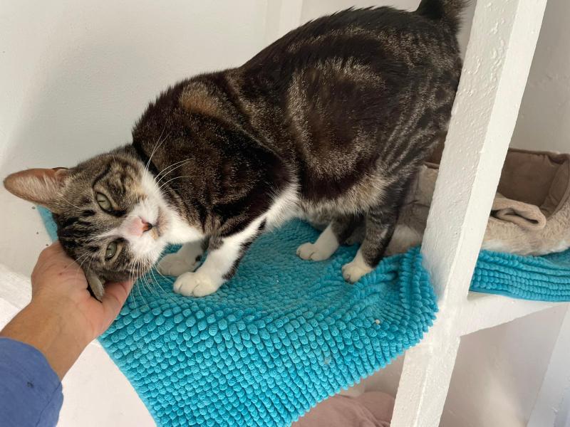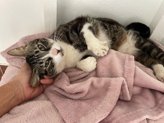 Der hübsche Kater Grappa lebte an einer Schnellstrasse und wurde dort gefüttert. Da er immer die Nähe von den Tierschützern suchte und sich auch gerne streicheln liess, wurde er in die Auffangstation gebracht.