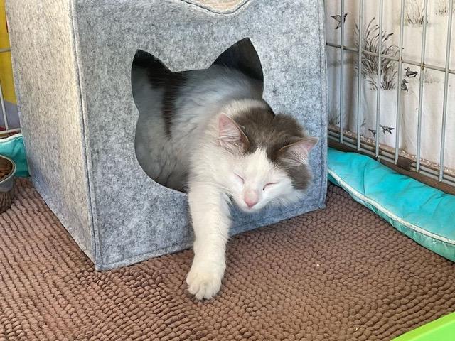 Das hübsche langhaarige weiss-graue Katerchen Salva lebte an einer gefährlichen Strasse mit viel Verkehr und hätte jederzeit überfahren werden können. Tierschützer brachten es dann in die Auffangstation.