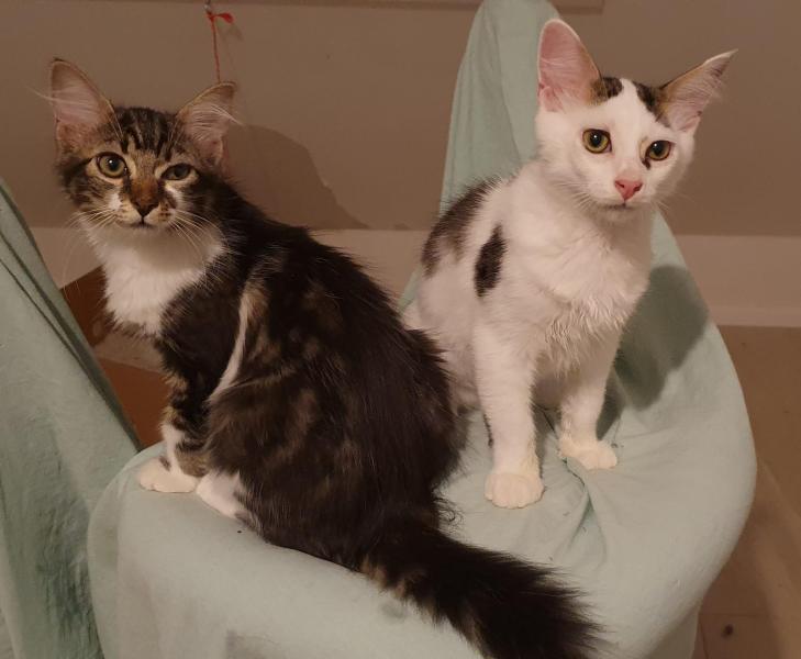 Zwei Kätzchen, ca. 4 Monate, männlich (weiss) & weiblich, Geschwister +plus die Mama, kastriert, entwurmt, entfloht, gechipt und geimpft.
