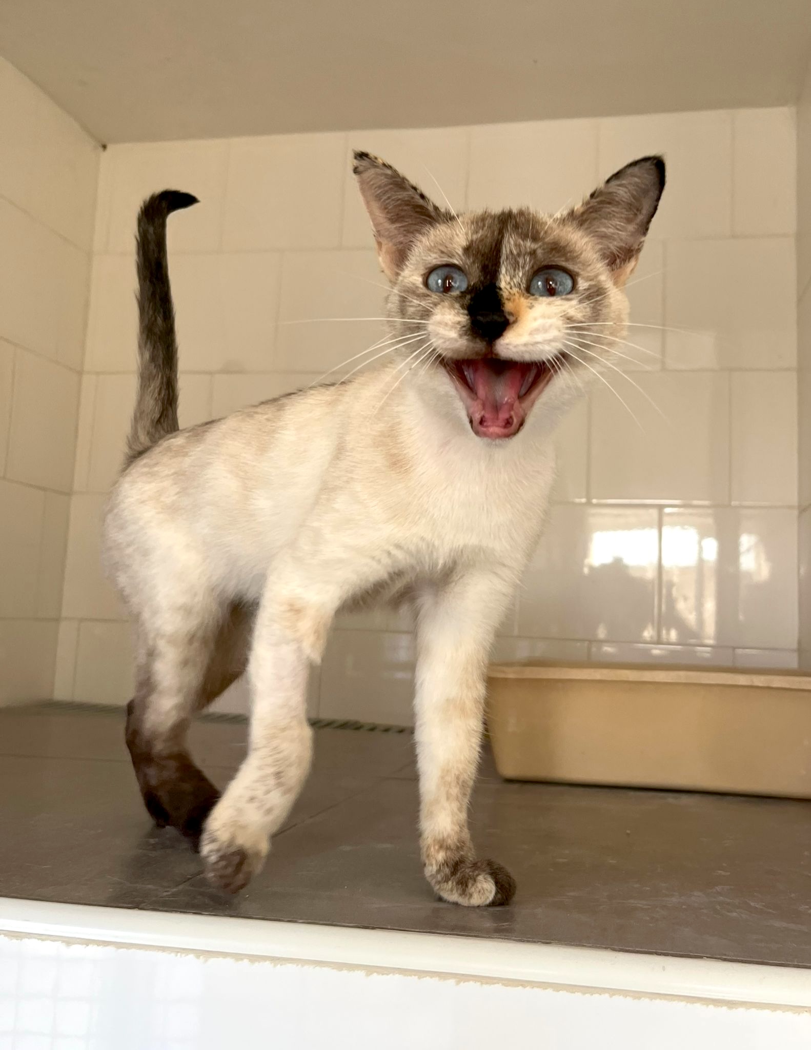 Als Kalesi ins Tierheim kam, war ihr Mäulchen in sehr schlechtem Zustand – viele Zähne fehlten bereits, und sie litt an einer starken Zahnfleischentzündung. Deshalb wurden am 26. September 2025 die verbliebenen Zähne entfernt. Kalesi hat jetzt also keine Zähne mehr, kommt damit aber wunderbar zurecht. Momentan frisst sie Nassfutter, und bald wird sie auch langsam wieder an Trockenfutter gewöhnt. Katzen ohne Zähne gewöhnen sich in der Regel sehr schnell an die neue Situation – und Kalesi macht das ganz grossartig. 💪🐱