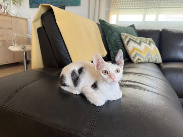 Das hübsche schwarz-weisse Katzenkind Katy wurde durch eine Tierschützerin auf dem Feld gefunden und mitgenommen. Nach dem Tierarztbesuch dufte es in die Auffangstation ziehen.
