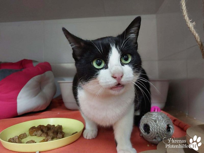 Lasko könnte locker Werbung für eine bestimmte Katzenfutter-Marke machen - so schön ist seine schwarz-weiße Zeichnung. Anfangs etwas schüchtern, taut der intelligente und aktive Kater schon schnell auf. Und dann gibt es kein Halten mehr, da er lautstark seine Streicheleinheiten fordert. Als sozialer und ausgeglichener Zeitgenosse würde sich Lasko im neuen Zuhause sicher auch über Katzen-Gesellschaft freuen.