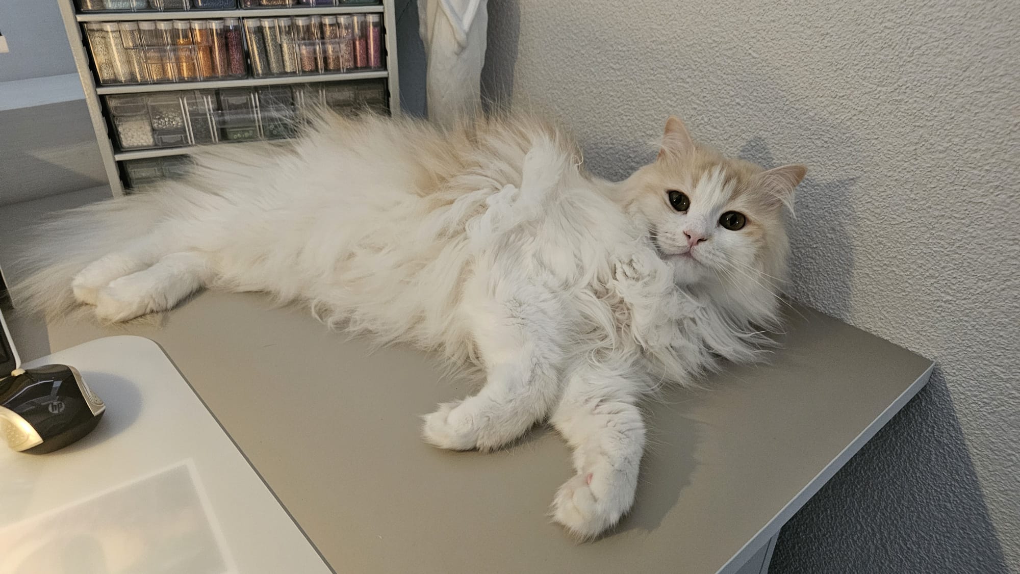 Er schmust super gerne, schläft am liebsten im Bett und will überall dabei sein. Aber – typisch Katze/Kater – gibt er vor, wann geschmust wird.