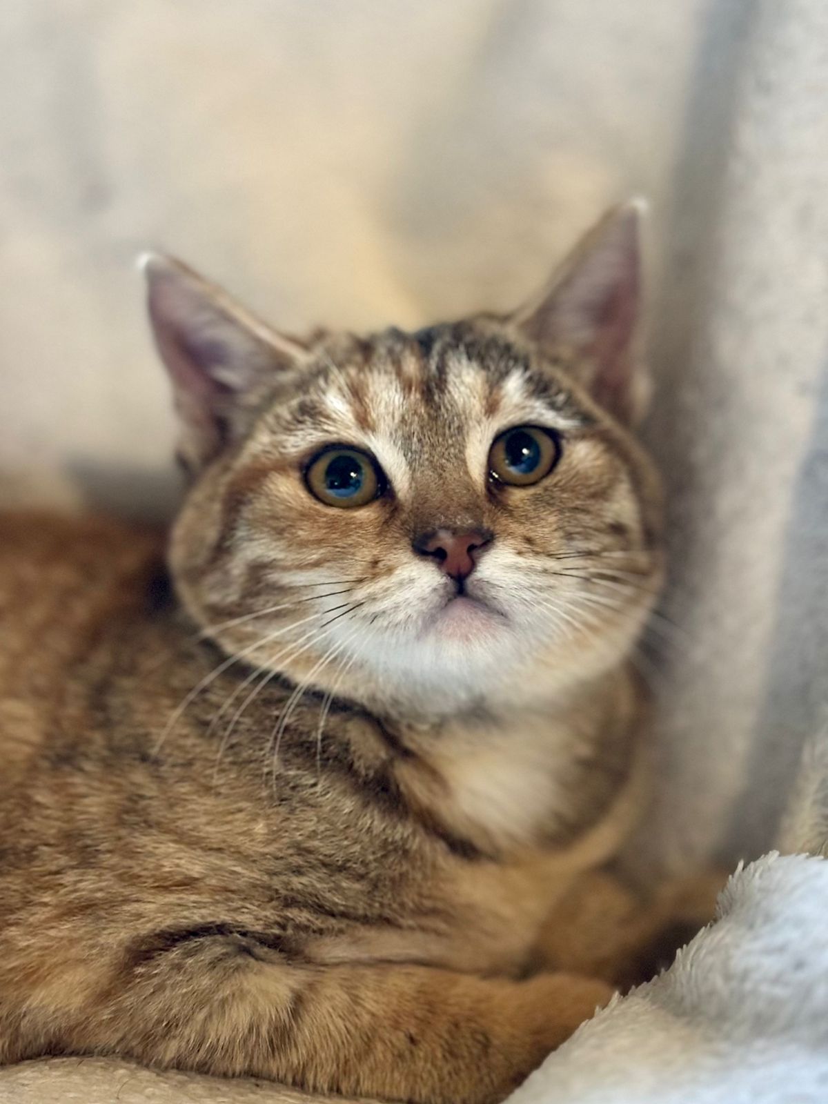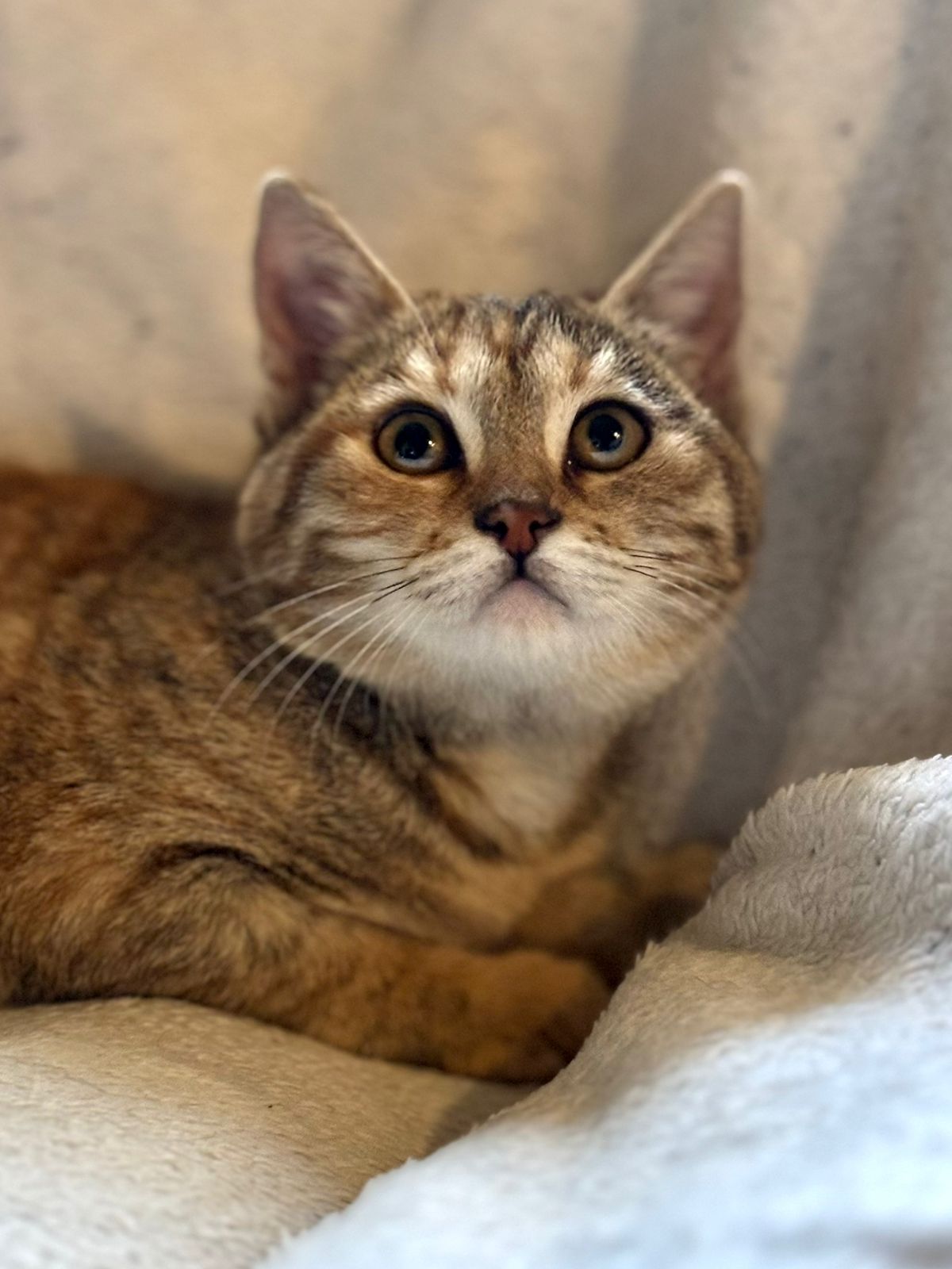 Sie ist nun in Sicherheit und wohlauf, gesund, entwurmt, geimpft und FIV/FELV-negativ. Lilibet hat bezaubernde Pausbäckchen, ein lustiges und liebes Wesen, ist extrem verspielt und intelligent und genießt es, von ihren Menschen gestreichelt und gekuschelt zu werden. Sie ist sehr verträglich mit anderen Katzen und blüht in Gesellschaft richtig auf.