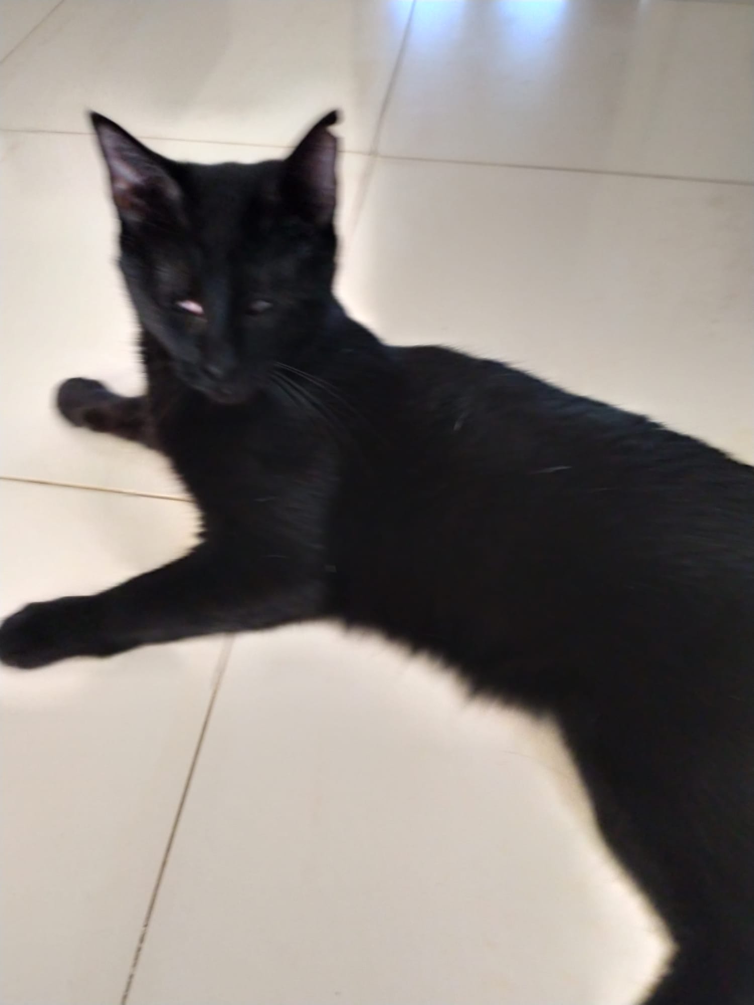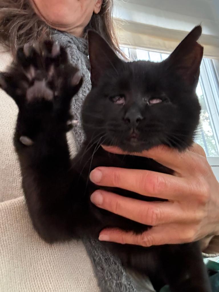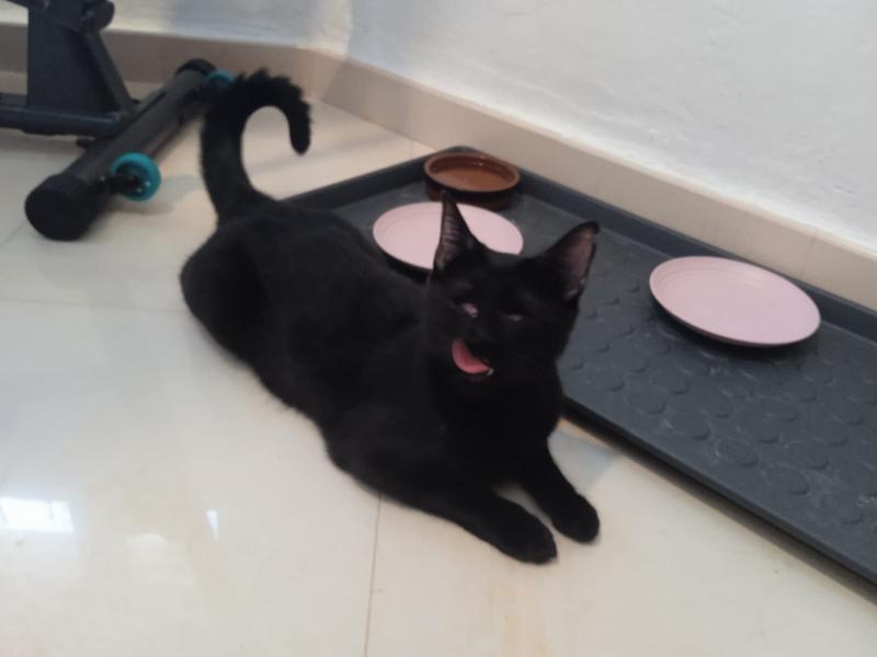 Der hübsche Lolo mit dem nachtschwarzen, glänzenden Fell ist blind. Er wurde auf der Landstrasse im Hinterland von Malaga von einer Touristin als handgrosses Fellbündel mit verklebten Augen aufgefunden. Die lokale Tierschutzorganisation, bei der er abgeben wurde brachte ihn zum Tierarzt. Nach eingehender Untersuchung musste leider festgestellt werden, dass der Sehnerv bei beiden Augen zerstört war.