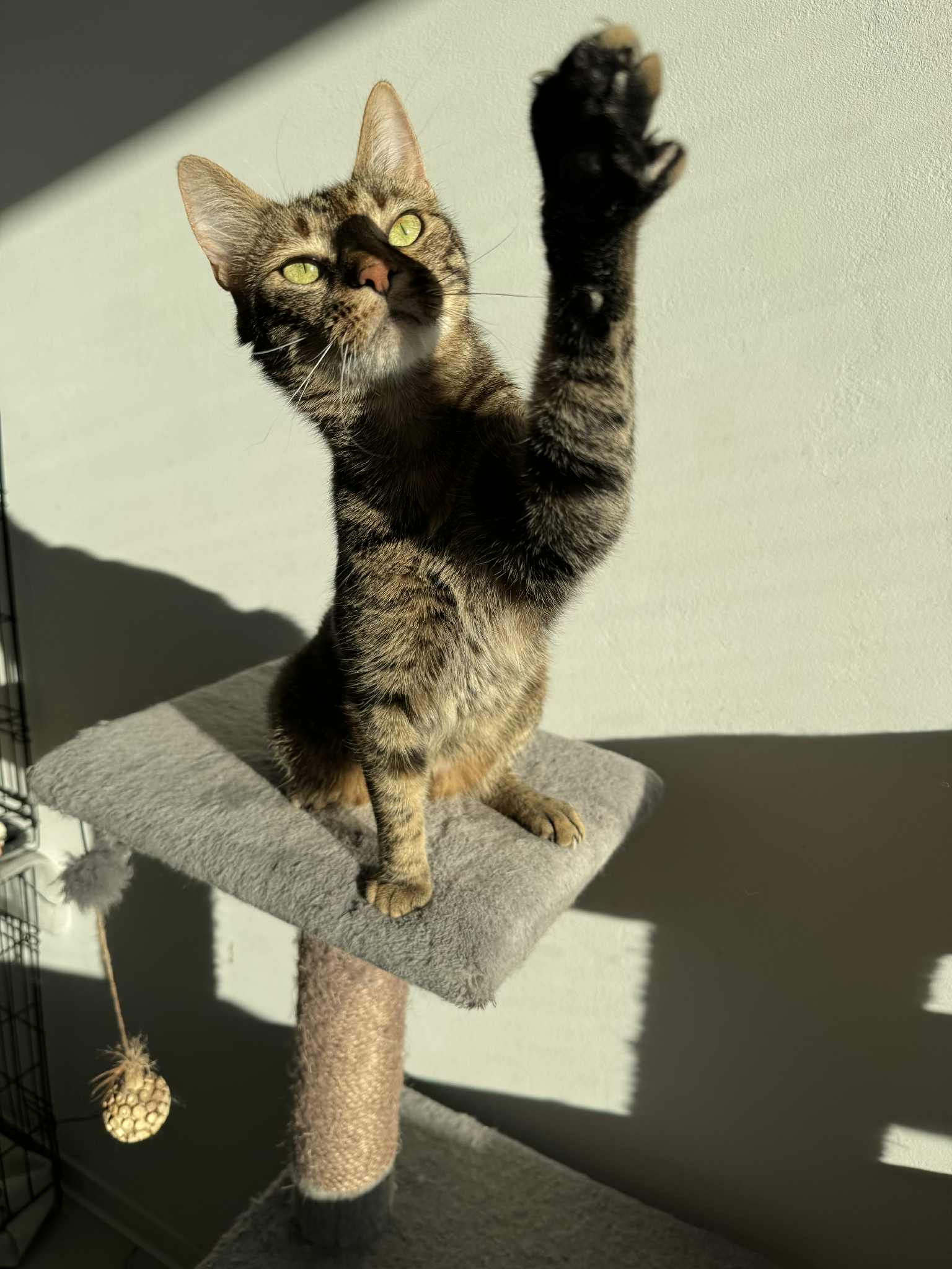 Lujza ist eine etwa 3-jahrige Katzendame, die immer noch sehr verspielt ist. Manchmal etwas wild im Spiel, daher nicht für kleine Kinder geeignet. Trotzdem ist sie sehr lieb, dankbar - und besonders glücklich, wenn ihr Bäuchlein voll ist. Sie versteht sich mit anderen Katzen. Freigängerli, fernab von Hauptstrassen und Gleisen
