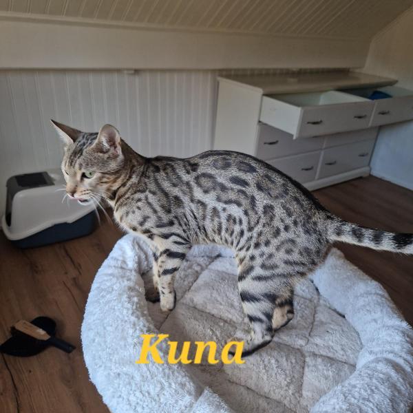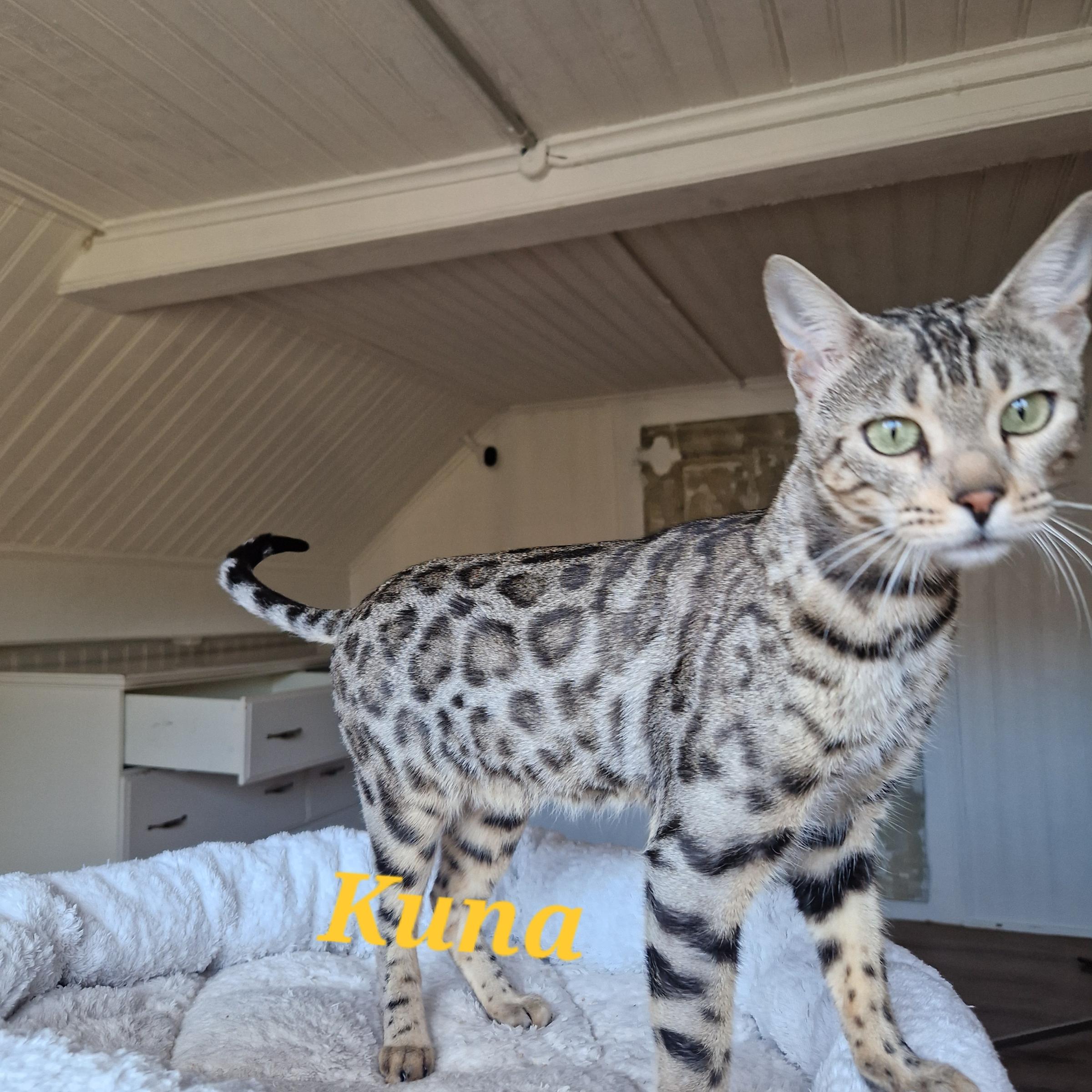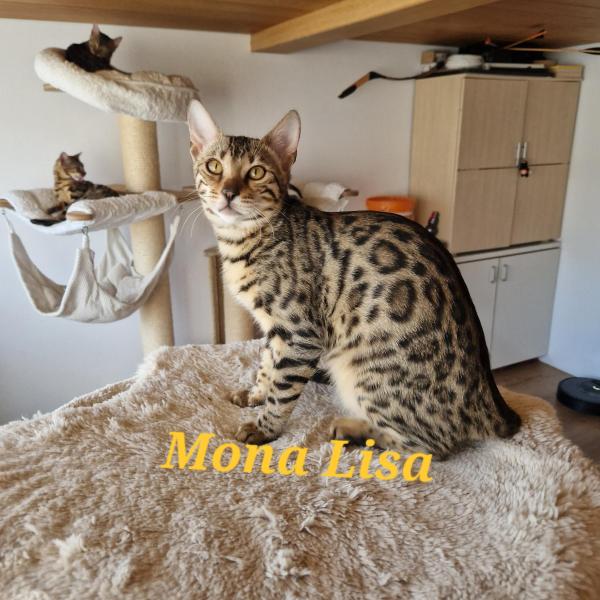 Wir kleinen Bengalen sind schmuse Tiger und suchen ein neues Zuhause um zu kuscheln, spielen und Freude zu verbreiten. Mufasa, Maggie und Mona Lisa sind die Kinder vom Supreme Champion Kairo vom Rittersaal und Kitten und Junior Champion Kuna. Wir haben am 17.05.2025 das Licht der Welt erblickt. Wir haben alle unsere Köfferchen gepackt und dürfen ausziehen. Wir sind 2-mal geimpft, gechipt, entwurmt und tierärztlich untersucht. Wir besitzen einen Stammbaum von der FFH. Unsere Eltern sind auf Erbkrankheiten wie Pra und PK-def getestet und sie haben einen Herz- und Nierenschall. Somit sind wir frei von Erbkrankheiten. Auch die Mama Kuna sucht ein neues zuhause. Am liebsten mit Mufasa zusammen.