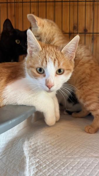 Mango wurde zusammen mit seiner Schwester Peach ausgesetzt und gerettet. Er ist ein verspielter, neugieriger und lieber Katzer.