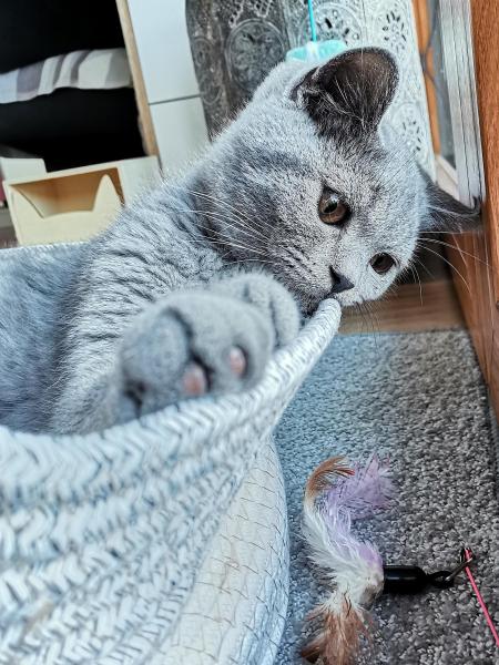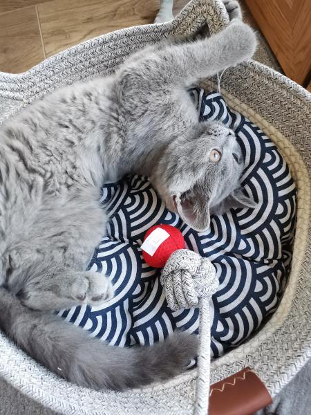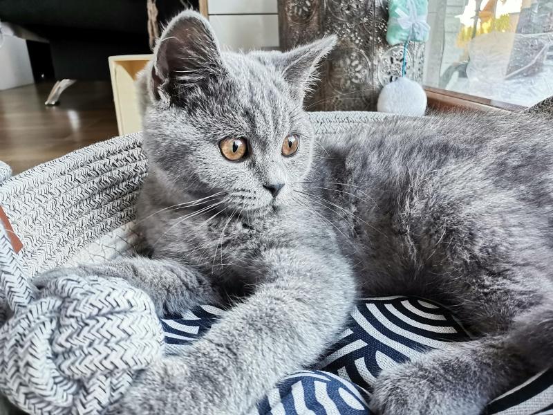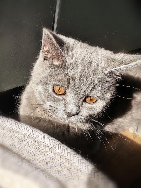 Die BSH sind eine Rasse, die das Leben langsam angehen. Und der Marlo ist wirklch ruhig. Er ist ein lieber und verschmuster klassischer blauer (dunkelgrau) Katerchen.