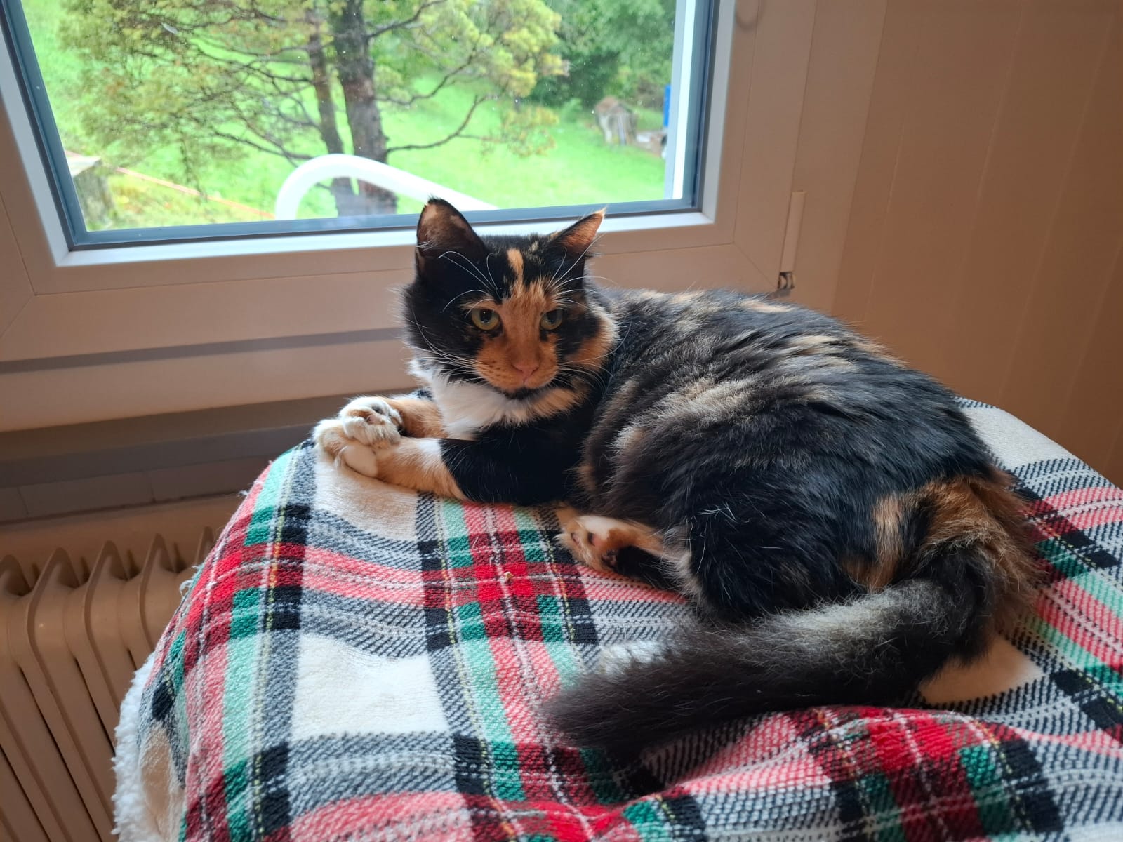 Gerne leistet sie Dir auch im Homeoffice Gesellschaft und liegt entspannt auf der Kratztonne am Fenster. Sie ist keine ausgesprochene Schmuserin. Doch mit Zeit und Geduld wächst das Vertrauen zu ihren Menschen. Dann geniesst sie kurze Streicheleinheiten  und das kurze, abendliche Spielen mit der Katzenangel.