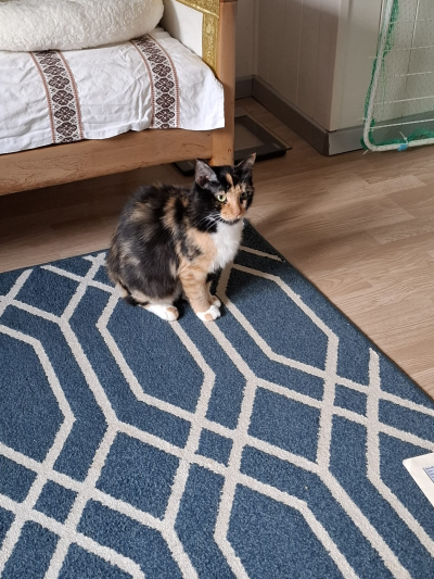 Ihre wunderschönen Augen verfolgen aufmerksam das Treiben im Haushalt. Sie sucht nicht die Gesellschaft der anderen Katzen faucht sie aber auch nicht an. Sie zieht aber die Gesellschaft der Menschen ihren Artgenossen vor und wir gehen davon aus, dass sie als Einzelkatze mit ihren Menschen leben möchte.