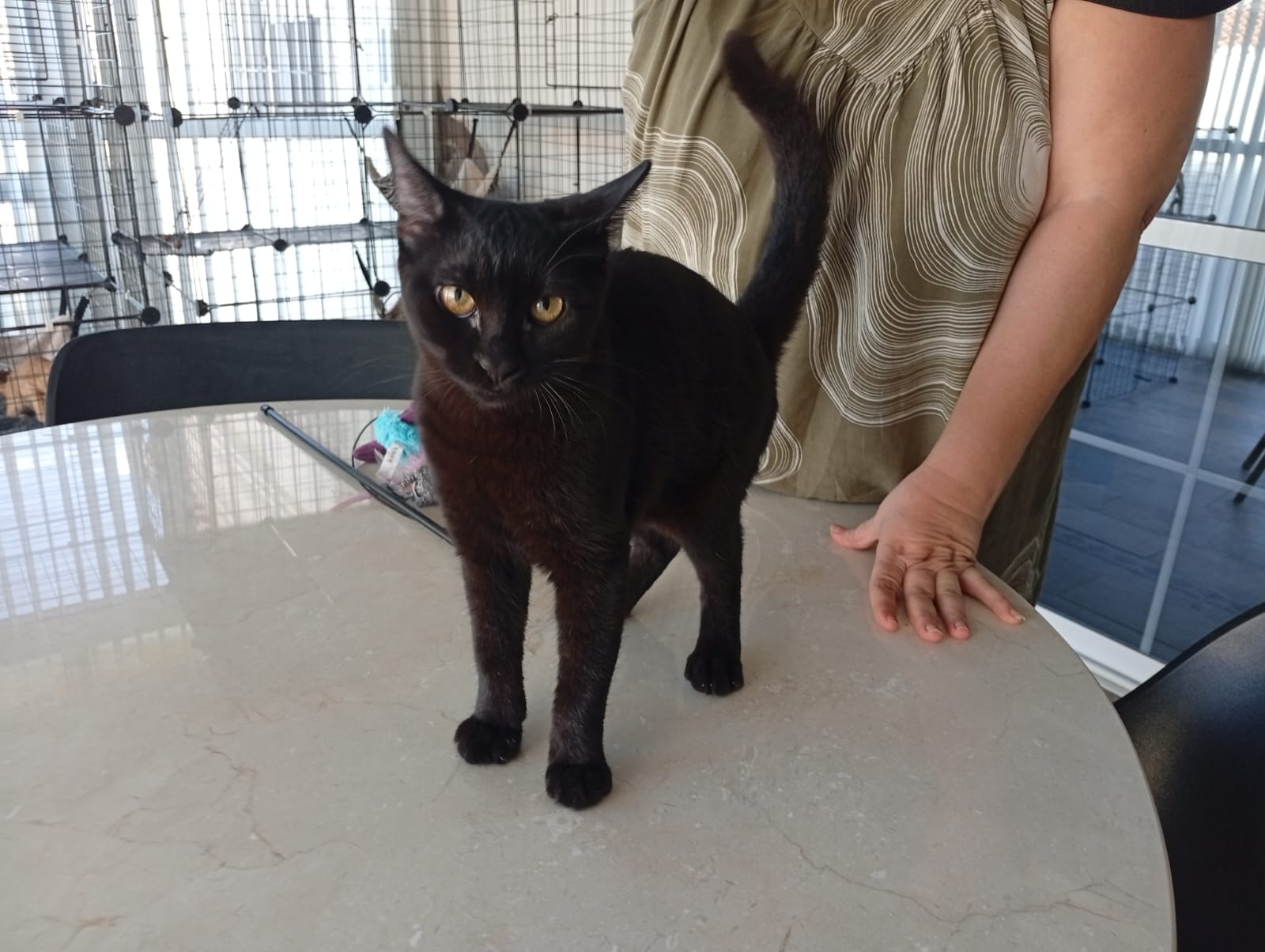 Im März brachte ein junger Mann fünf schwarze Kitten zu Rita in die Pflegestelle. Er hatte sie in einem Gebüsch gefunden. Sie waren dehydriert und wohl schon mehrere Tage ohne Nahrung. Eines der Kitten konnte nicht mehr gerettet werden. Die anderen vier wurden von Rita aufgepäppelt und haben sich zu tollen, eigenständigen Persönlichkeiten entwickelt. Ihr Bruder Max durfte schon in sein Für-Immer-Zuhause umziehen.