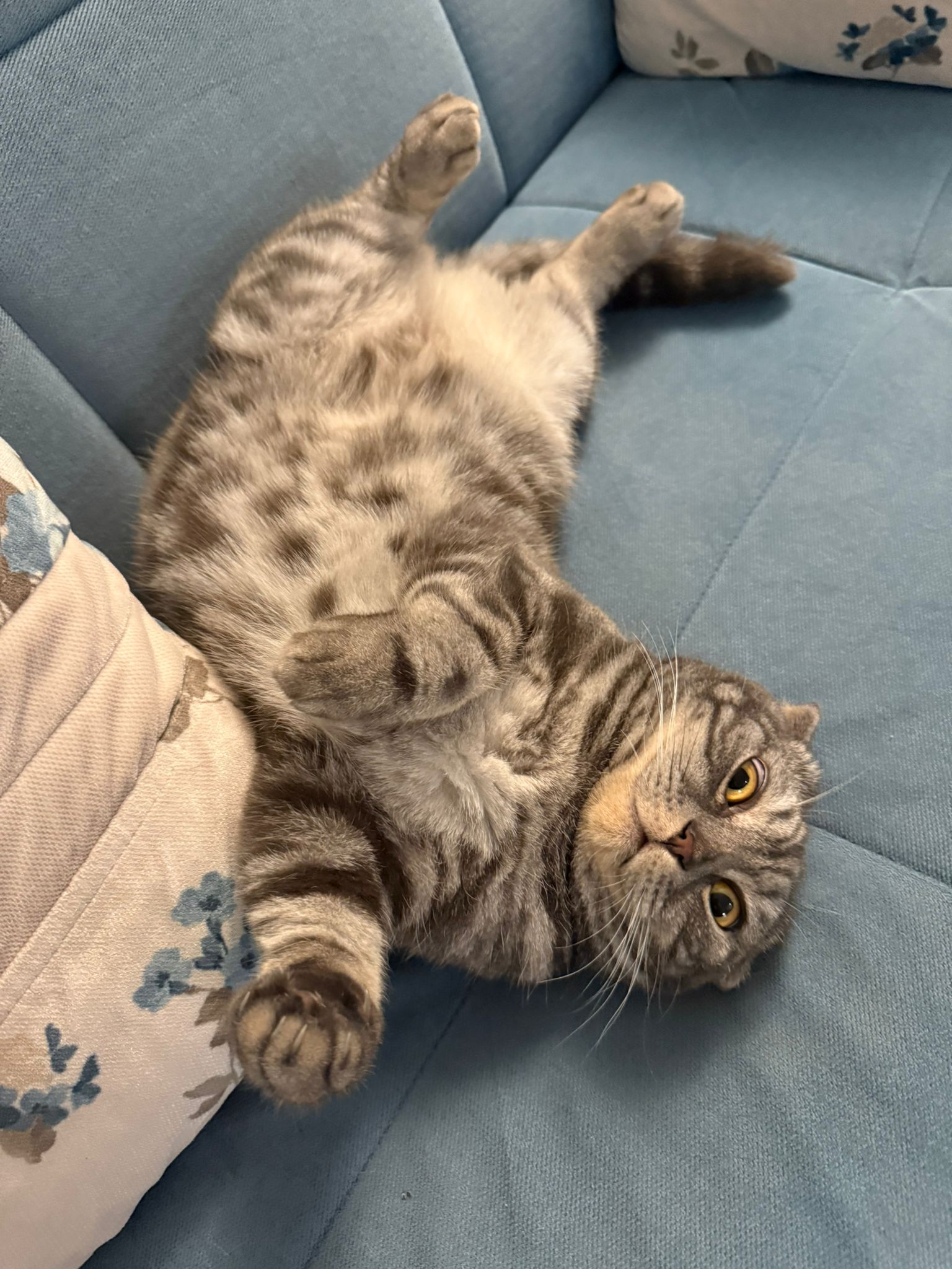 Aktuell scheint es Mila gut zu gehen, aber wir möchten transparent darauf hinweisen, dass Scottish Fold Katzen leider aufgrund ihrer Zuchtform massive gesundheitliche Probleme entwickeln können.