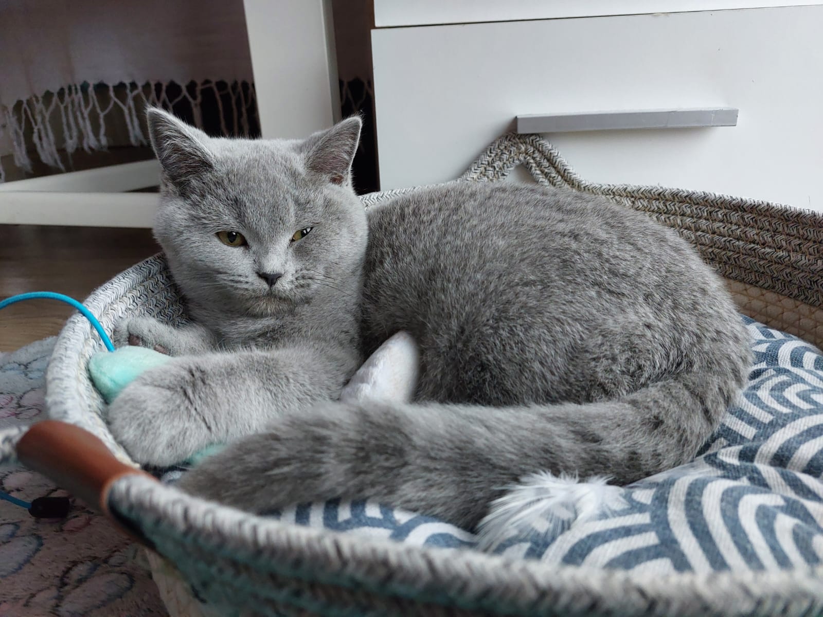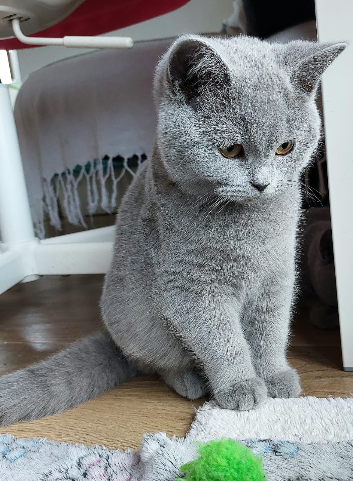 Der Mango ist ein lieber und verschmuster klassischer blauer (dunkelgrau) Katerchen. Für sein junges Alter, sehr ausgeglichen und sehr gut gewachsen.