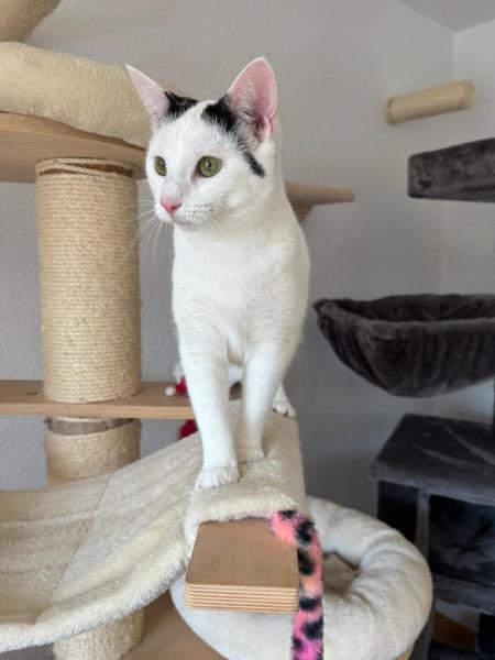 Minnie (15.05.23) liebt es zu kuscheln und kann von Schmusestunden gar nicht genug kriegen. Dem Alter entsprechend ist sie eine verspielte Kätzin, welche bestimmt eine gute Jägerin wird. Die Harlekin-Schönheit verzaubert mit ihren Augen oder spätestens dann, wenn sie dich zum Lächeln bringt. Sie liebt es gebürstet zu werden und flitzt gerne über die Catwalks.