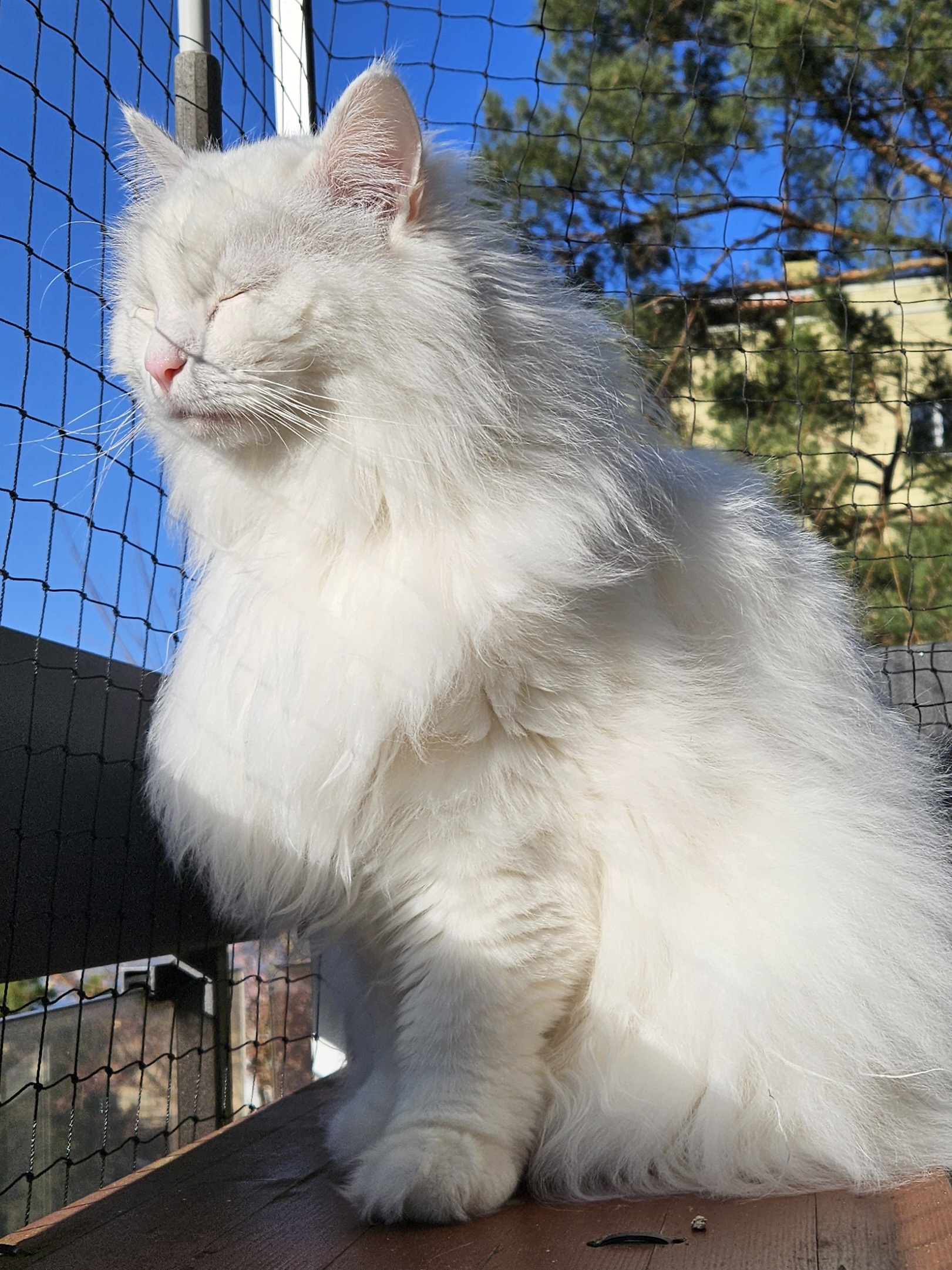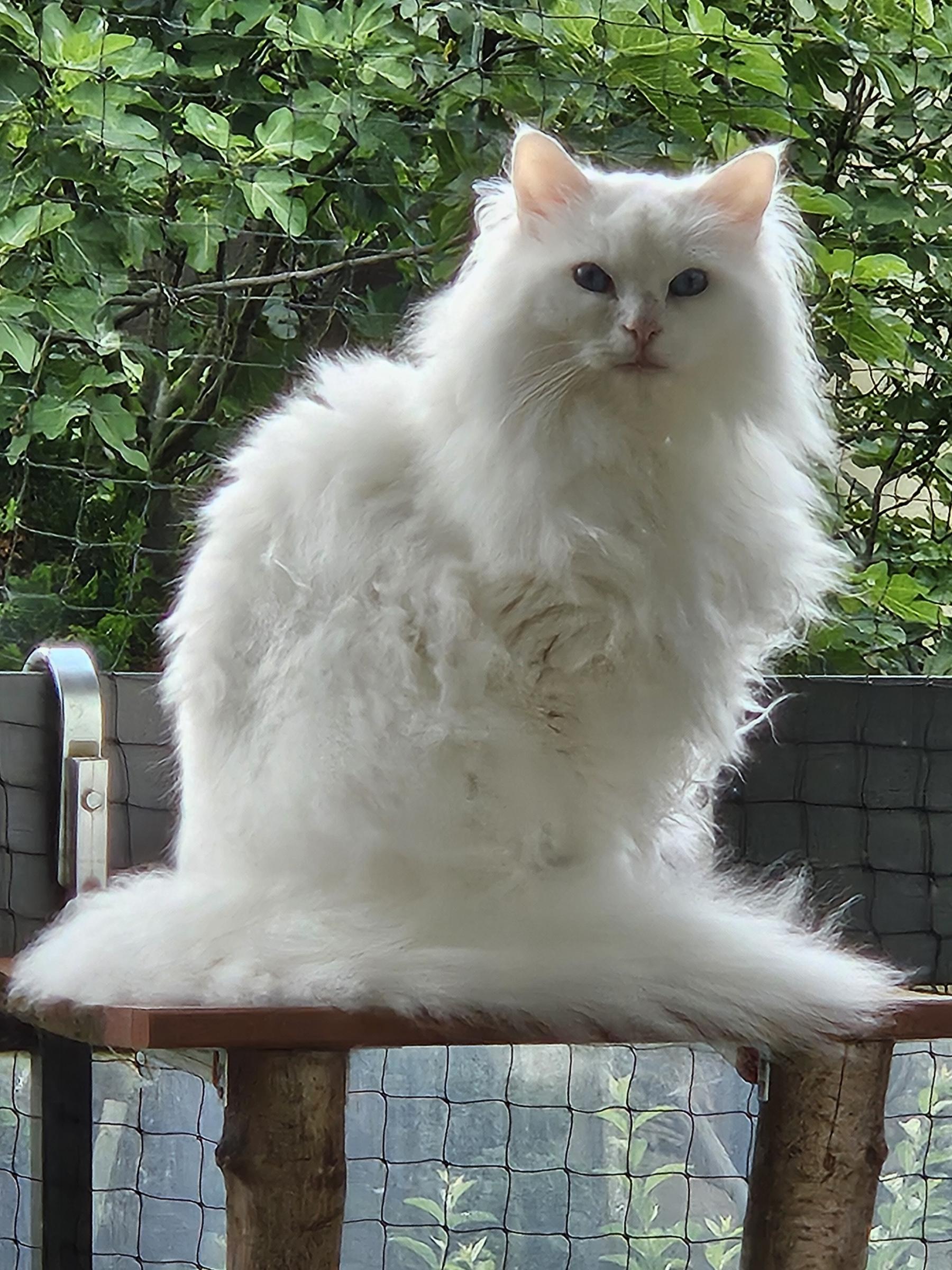 - Ein geschützter Garten oder gesicherter Balkon sind ein Muss, da er sehr gerne an der frischen Luft sitzt und die Welt beobachtet. Er ist ein Wohnungskater und nicht an Freigang gewöhnt. Vielleicht klappts aber mit Geschirrchen und Leine?