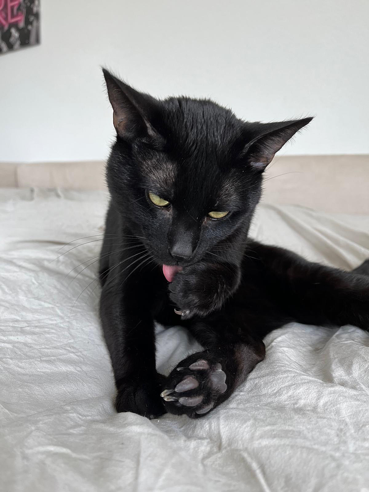 Der geschmeidige schwarze Kater Neji ist zurückhaltend und etwas schreckhaft. Er beobachtet zuerst mal und wenn es für ihn stimmt, kommt er sich seine Streicheleinheiten abholen. Wenn er seine Menschen kennt, ist er zutraulich, anschmiegsam und sehr verschmust, er spielt auch gerne.