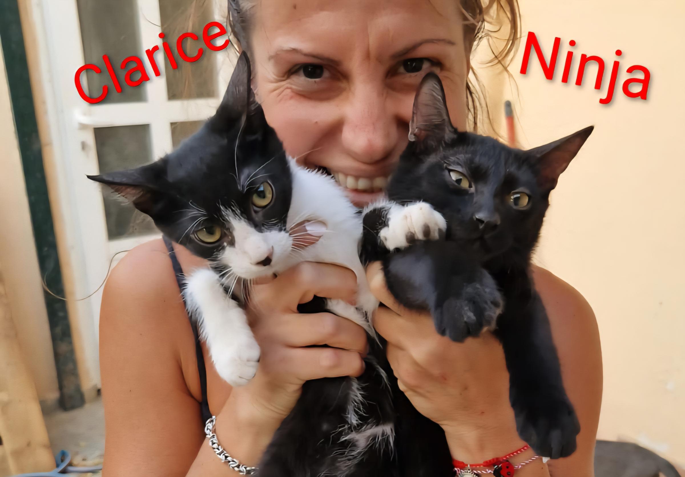 Clarices Geschichte begann auch sehr traurig. Allein auf der Straße ohne ihre Mutter gefunden, wurde Clarice von lieben Leuten in die gleiche Klinik gebracht. Als sie dort Ninja kennen lernte freundeten sie sich sofort an. Von diesem Tag an waren sie unzertrennlich und spielten, assen und schliefen zusammen im selben Körbchen.