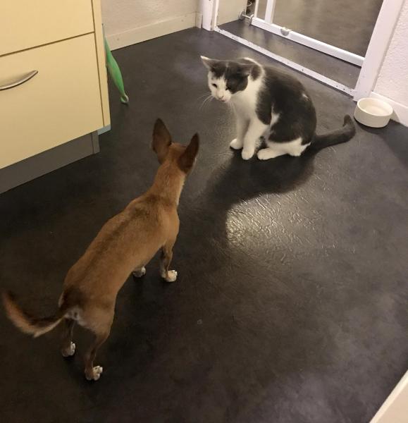 Perla schwarz-weiss & Arthur grau-weiss, ca. 12 Mte., gechipt, 2 x geimpft inkl. Tollwut, kastriert, neg. getestet, entwurmt