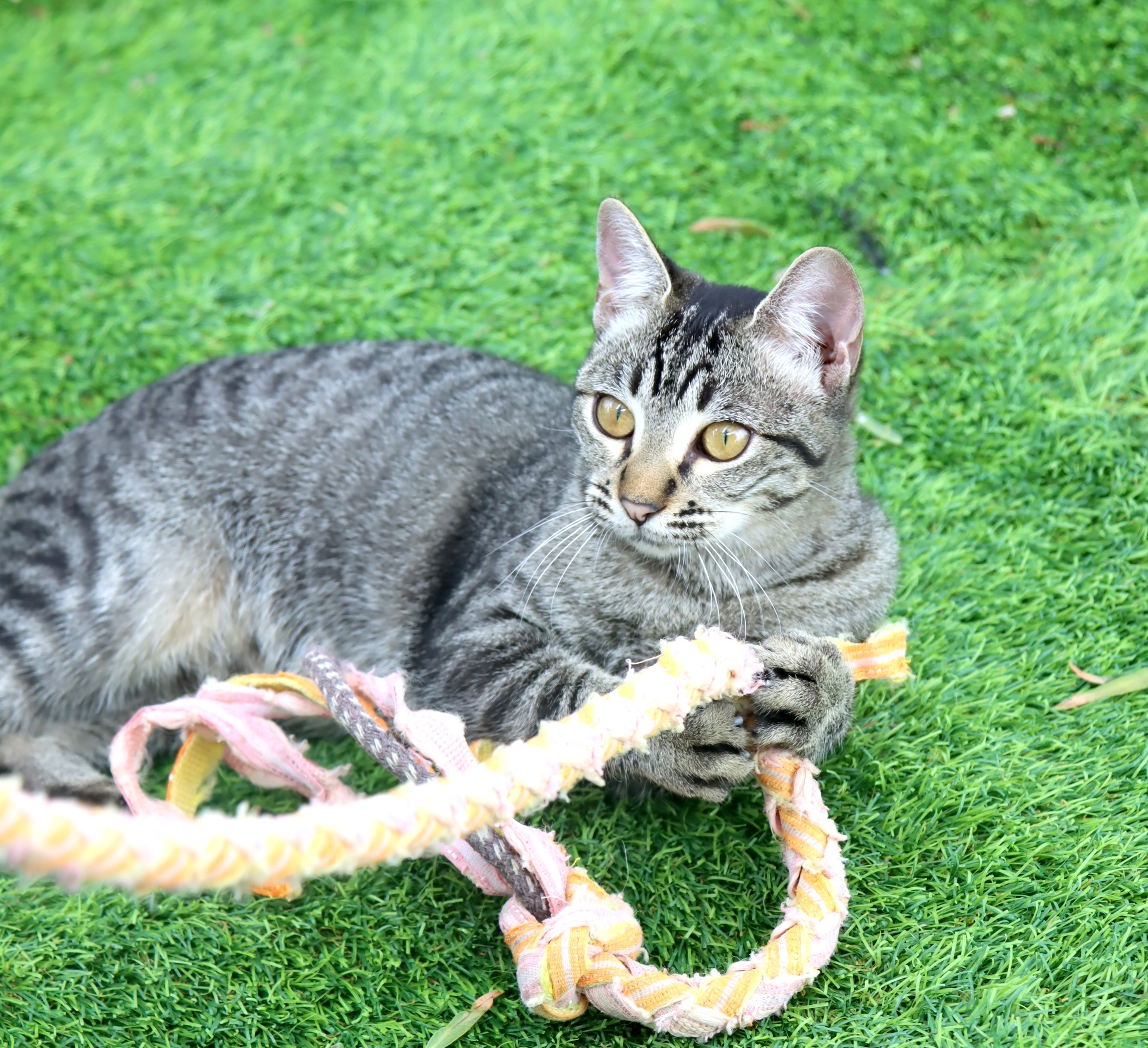 Pétalo und ihre Geschwister wurden von einem Mitglied der Stiftung in unser Partner-Tierheim gebracht. Jemand hatte sie um Hilfe bei der Vermittlung einiger Kätzchen gebeten. Sie bestand jedoch darauf, dass die Mutterkatze vorher kastriert wird – was auch umgesetzt wurde. Als die Kleinen in die Obhut des Vereins kamen, waren sie noch etwas zurückhaltend. Inzwischen haben sie sich jedoch zu sehr aufgeweckten, verschmusten und liebenswerten Katzenkindern entwickelt.