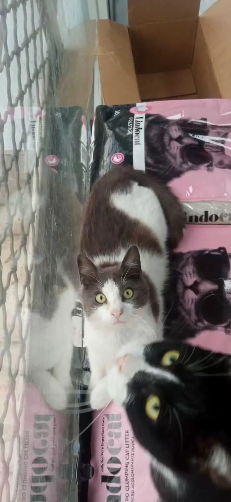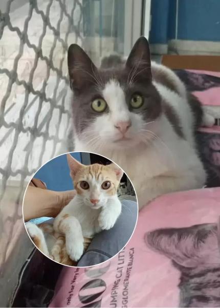 Renos ist der grauweisse Kater und Muffin der rote Teenie. Muffin rief verzweifelt und sehr sehr hungrig draussen in Elisavets Nachbarschaft nach Hilfe und Elisavet suchte das halbverhungerte Flohsäckchen und obwohl wirklich unsicher war ob er es schafft: er kämpfte sich zurück ins Leben und Renos adoptierte den kleinen Kater.