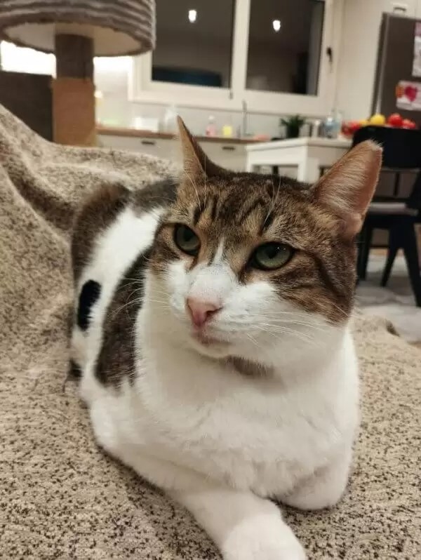 In seinem Fell haben auch keine Motten gewütet, das Fellloch am Hals bedeutet lediglich, dass ein großes Blutbild erstellt wurde. Alle Katzen werden umfassend untersucht und über Handicaps klären wir ausführlich auf.