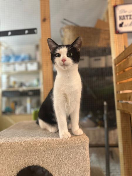 Er kam gemeinsam mit seiner Mama und seinen Geschwistern als kleines Wildkätzchen zu einer lieben Tierschützerin und hat sich zum zutraulichen, verspielten, verschmusten und sehr sozialen Jungkater entwickelt.