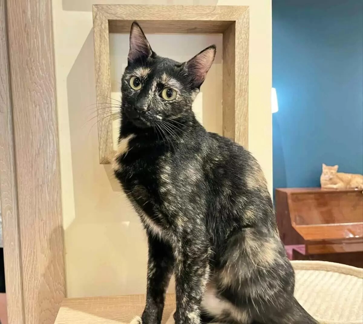 Die beiden haben sich zu quietschfidelen Teenagern entwickelt, die voller Lebensfreude sind. Besonders der kleine Kater Mojito hat sich zu einem charmanten, lustigen Kerlchen gemausert. Vielleicht sind kleine schwarze Kater mit einem plötzlich braun schimmernden Schnäuzchen wirklich etwas ganz Besonderes. Die beiden haben altersgemäss großssn Spaß am Spielen, schlemmen mit Begeisterung und haben inzwischen Mocca ins Herz geschlossen. Mocca, die ihren eigenen Beitrag auf unserer Website hat, hielt bisher stets Abstand zu anderen Katzen. Doch die Teenies haben es geschafft, ihr Vertrauen zu gewinnen. Inzwischen geniessen sie gegenseitiges Putzen und Kuscheln, was Mocca regelrecht aufblühen lässt.