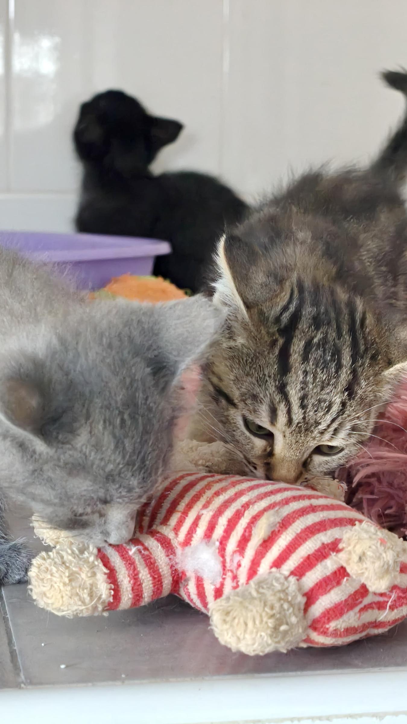 Mit viel Hingabe und Fürsorge zog Carmen die drei verbliebenen Kätzchen gross, bis sie alt genug waren, um in unser Partner-Tierheim umzuziehen und sich von dort aus auf die Suche nach ihrem Für-immer-Zuhause zu machen.