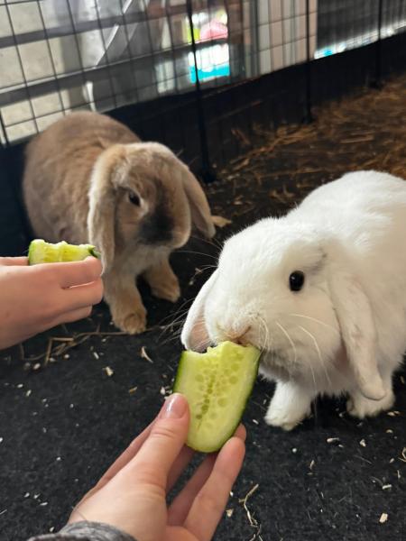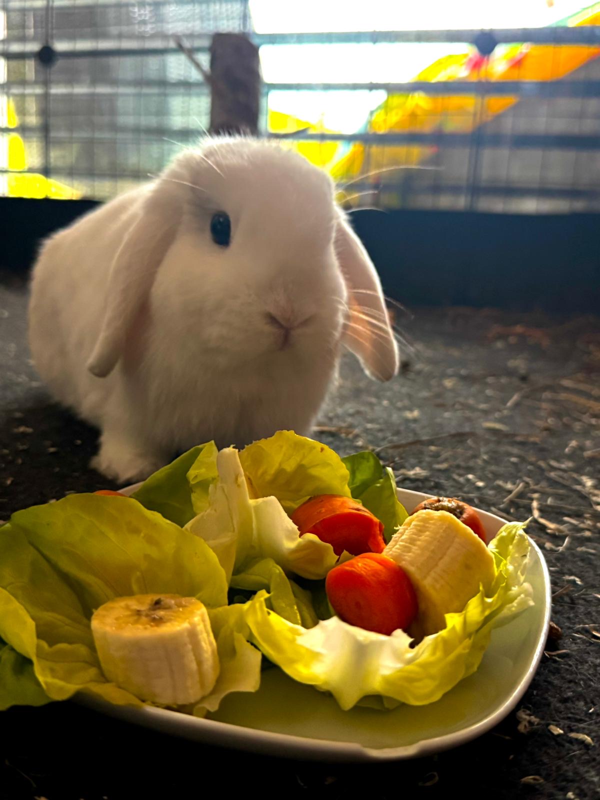 Die beiden Schlappohren sind im Oktober 4-jährig geworden und stammen aus Innenhaltung. Daher leben die Kaninchen nun auch bei uns drinnen, bis sie im Frühling nach draussen ziehen dürfen.