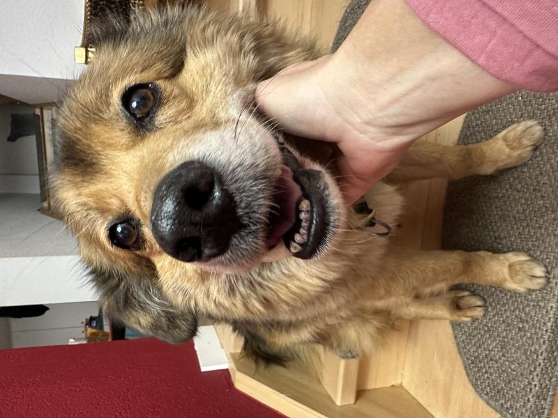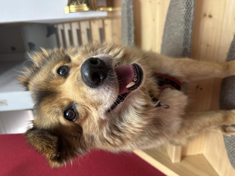 Aaron ist ein kastrierter Schäfer - Collie Mischlingsrüde. Er ist sehr verspielt und aufmerksam und hat einen guten Gehorsam. Aaron springt Bällen hinterher und spielt auch gerne mit Kuscheltieren oder springt auf Hindernisse. Seine Spürnase ist bemerkenswert und er wäre der perfekte Fährtenhund.