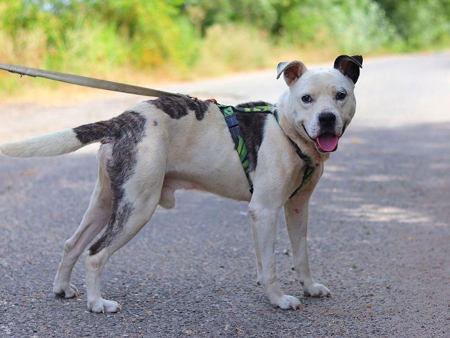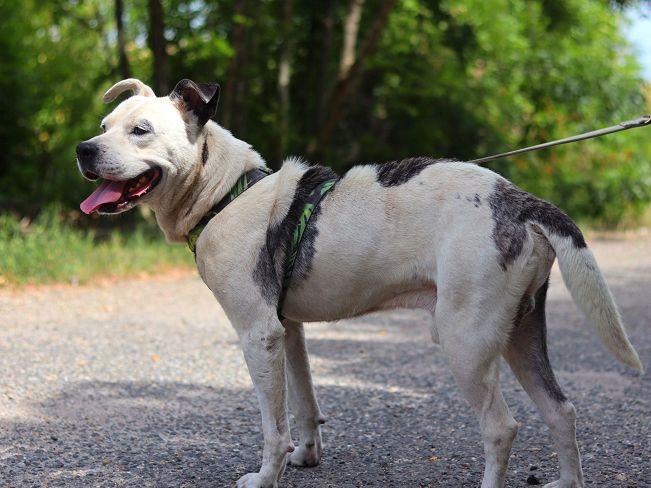 Es erstaunt uns immer wieder, dass sich Hunde, die ihr bisheriges Leben unter solch furchtbaren Bedingungen gefristet und sicher noch keinerlei Liebe und Zuwendung erfahren haben, im Heim dann so freundlich, zugewandt und auch lebenslustig zeigen wie auch Adam. Er ist ein aktiver, neugieriger und bewegungsfreudiger Entdecker, der sehr gerne spazierengeht. Leider hat er viel zu selten die Gelegenheit dazu, denn für regelmäßige Gassigänge bleibt im Heim einfach zu wenig Zeit. Wird er dann mal aus dem Zwinger geholt, ist er freudig aufgeregt und muss noch lernen, ordentlich an der Leine zu laufen ohne zu ziehen. Er findet aber auch die Zeit für ein paar Kuscheleinheiten, denn auch das mag er sehr.