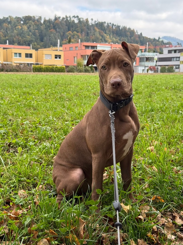 Alkis (11.05.2025) ist ein junger, wunderschöner American-Staffordshire-Terrier-Rüde mit viel Energie, Intelligenz und Arbeitswillen. Ursprünglich stammt er aus Griechenland und lebt aktuell in der Schweiz. Leider muss für ihn ein neues Zuhause gesucht werden, da seine jetzigen Halter mit den Anforderungen eines pubertierenden Junghundes überfordert sind.