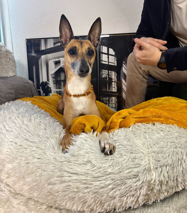 Ansa (17.1.21) ist eine lebhaft verspielte und anhängliche Hündin. Sie hat viel Energie und will körperlich wie auch geistig ausgelastet werden. Sie liebt es zu rennen, da kommt der Windhund in ihr durch und sie apportiert leidenschaftlich gut und gerne. Ansa ist mit ihren neun Kilos eine zarte Hündin, welche ein stabiles Umfeld sucht. Im Alltag benötigt sie viel Ruhe, Struktur und eine faire Führung. Zurzeit springt sie bellend in die Leine bei Hundebegegnungen oder sonstigen unerwarteten Situationen und zeigt Leinenaggression. Zuhause ist sie eine wunderbare ruhige Lady, welche gerne im Bett, in kuscheligen Decken eingepackt und am besten nahe an ihrem Menschen schläft. Eine Kuschelmaus eben.