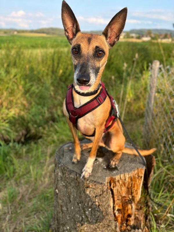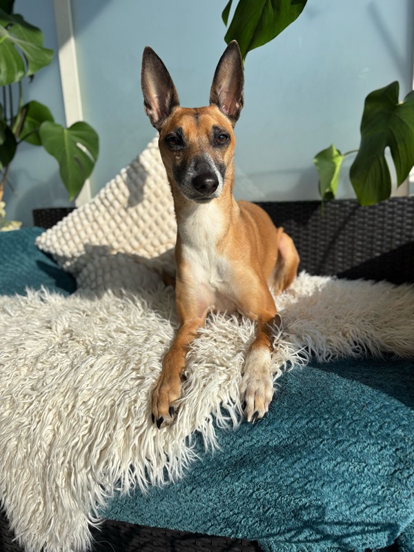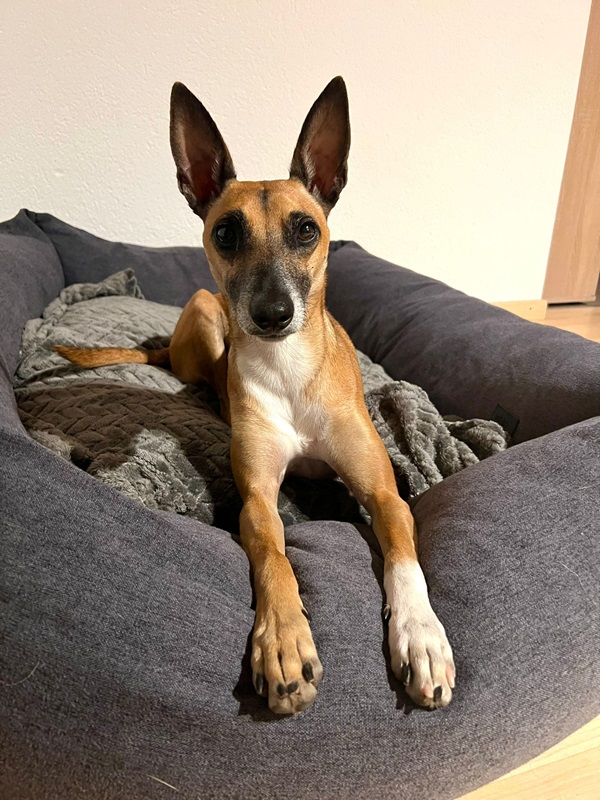 Ansa (17.1.21) ist eine lebhaft verspielte und anhängliche Hündin. Sie hat viel Energie und will körperlich wie auch geistig ausgelastet werden. Sie liebt es zu rennen, da kommt der Windhund in ihr durch und sie apportiert leidenschaftlich gut und gerne. Ansa ist mit ihren neun Kilos eine zarte Hündin, welche ein stabiles Umfeld sucht. Im Alltag benötigt sie viel Ruhe, Struktur und eine faire Führung. Zurzeit springt sie bellend in die Leine bei Hundebegegnungen oder sonstigen unerwarteten Situationen und zeigt Leinenaggression. Zuhause ist sie eine wunderbare ruhige Lady, welche gerne im Bett, in kuscheligen Decken eingepackt und am besten nahe an ihrem Menschen schläft. Eine Kuschelmaus eben.