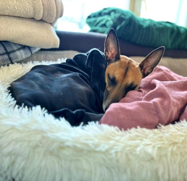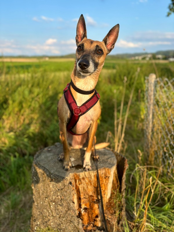 Ansa (17.01.2021) ist eine lebhaft verspielte und anhängliche Hündin mit sehr viel freudiger Lebensenergie. Sie liebt es zu rennen, da kommt der Windhund in ihr durch und sie apportiert leidenschaftlich gut und gerne. Ansa ist mit ihren neun Kilos eine zarte Hündin, welche ein liebevolles Umfeld sucht. Im Alltag benötigt sie Ruhe, Struktur und eine faire Führung. Bei Hundebegegnungen oder sonstigen unerwarteten Situationen springt sie bellend in die Leine und pöbelt. Daher trägt sie draussen eine Maukorb. Zuhause ist sie eine wunderbare ruhige Lady, welche gerne im Bett, in kuscheligen Decken eingepackt und am besten nahe an ihrem Menschen schläft. Eine Kuschelmaus eben.