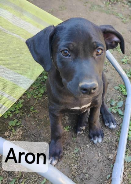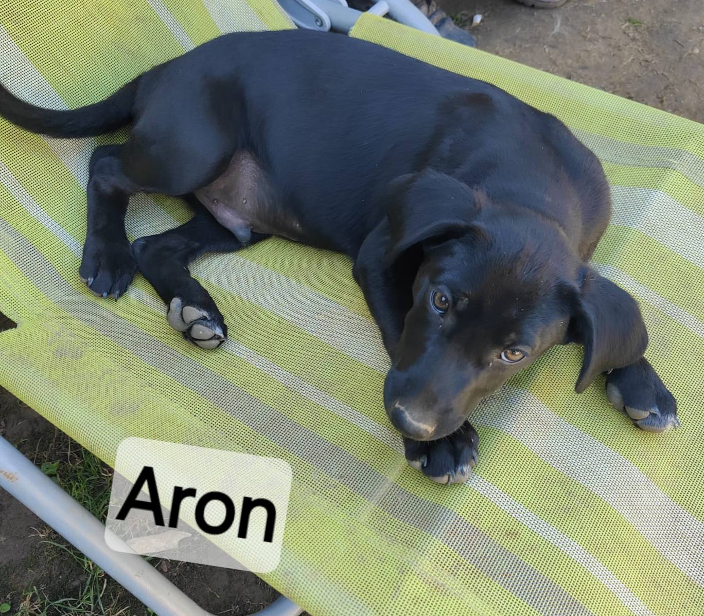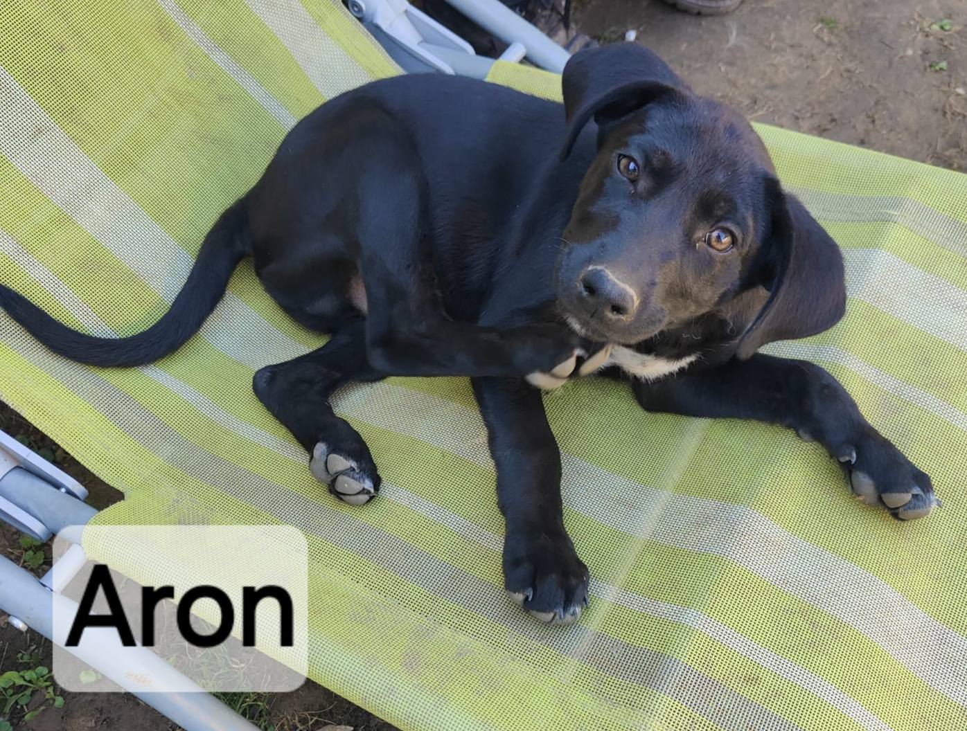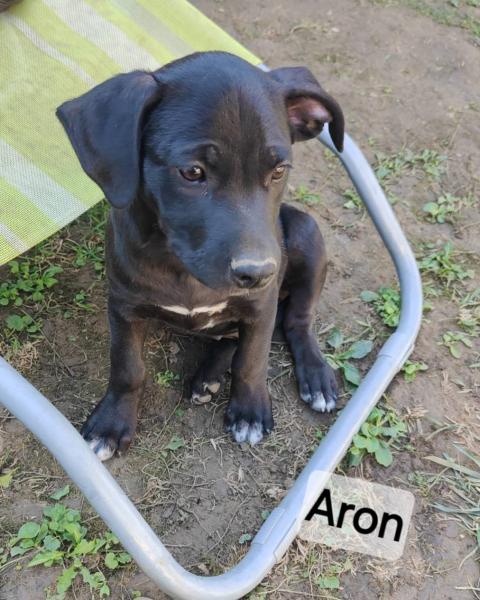 Aron hat wahrscheinlich Labrador-Gene, was man auch an seinem freundlichen Wesen merkt. Er stammt aus einem Haushalt, in dem die Welpen leider weder die notwendige Versorgung noch die nötige Zuneigung erhielten. Glücklicherweise wurde er von Tima Tierschutz übernommen, wo er jetzt liebevoll betreut wird.