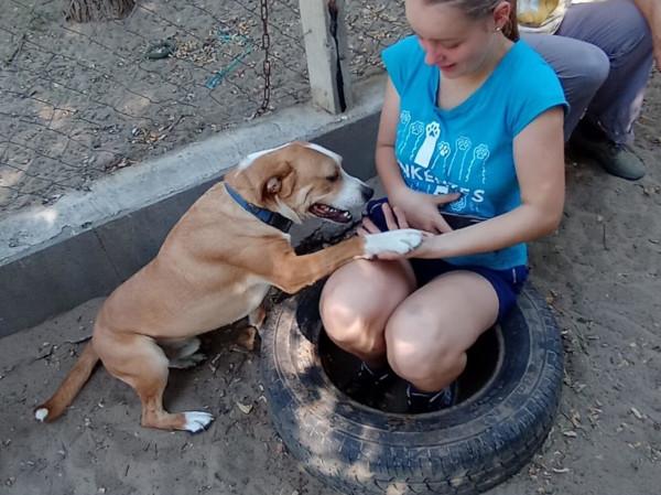 Baki hat gezeigt, wie freundlich, liebenswert, zutraulich, menschenbezogen und kinderlieb er ist. Wenn er aus seinem Zwinger kommt, läuft er auf dem Spielplatz erst einmal herum, schnuppert und baut seine überschüssige Energie ab. Danach ist ihm das Wichtigste, in der Nähe von Menschen zu sein. Er setzt sich, schmiegt sich an und bittet um Streicheleinheiten und Zuwendung. Auch die Fellpflege geniesst er. Für jedes gute Wort ist er dankbar. Wenn wir uns am Mentorentag mit ihm beschäftigen, lächelt er und ist glücklich. Er hatte immer einen Hundekameraden und lebt auch jetzt mit einem anderen Hund zusammen in einem Zwinger. An der Leine ist er gut zu führen.