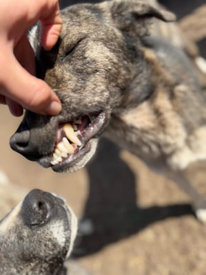 Benny, geboren ca. 01/2023, kastriert, Schulterhöhe ca. 50 cm, im Shelter seit 04/2023Benny ist einer von 20 Welpen, die ausgesetzt gefunden wurden. Bis zur Grundimmunisierung kamen die Welpen bei einer Privatperson in Valcea unter, mussten danach aber ins Shelter umziehen weil es keine andere langfristige Lösung gab. Mittlerweile ist Benny zu einem schönen jungen Rüden herangewachsen und hatte leider - ebenso wie sein Bruder Pepper -  noch nie eine Anfrage. Er ist ein ausgesprochen freundlicher und lustiger Vierbeiner. Anfänglich ist er etwas schüchtern, dennoch sucht er gerne die Nähe von Menschen. Sobald er das Gefühl hat, diesen vertrauen zu können, himmelt er sie regelrecht an und würde am liebsten in sie hineinkriechen. Im Zusammenleben mit anderen Hunden erweist er sich ebenfalls als sehr freundlich und zugewandt. Er geht schon gut an der Leine und wird sicherlich eine tolle Bereicherung für seine zukünftige Familie. Leider fiel beim letzten Besuch unserer Volontäre auf, dass Benny stark abgenommen hatte und insgesamt mit stumpfem Fell und Apathie überhaupt keinen gesunden Eindruck machte. Bei der darauf folgenden Untersuchung stellte sich heraus, dass er einige stark entzündete Backenzähne und entzündetes Zahnfleisch hatte. Er wurde einzeln gesetzt, behandelt und zwei seiner Zähne in einer Operation gezogen. Davon hat er sich mittlerweile gut erholt und nimmt bereits wieder zu. Leider wird der Stress im Shelter eine große Rolle bei der Entstehung dieser Probleme gespielt haben, einige Hunde leiden einfach sehr und dies sorgt für gesundheitliche Baustellen. Daher suchen wir für Benny ganz dringend eine Familie, die ihn dem stressigen Shelteralltag entfliehen lässt, bevor er weiter abbaut.