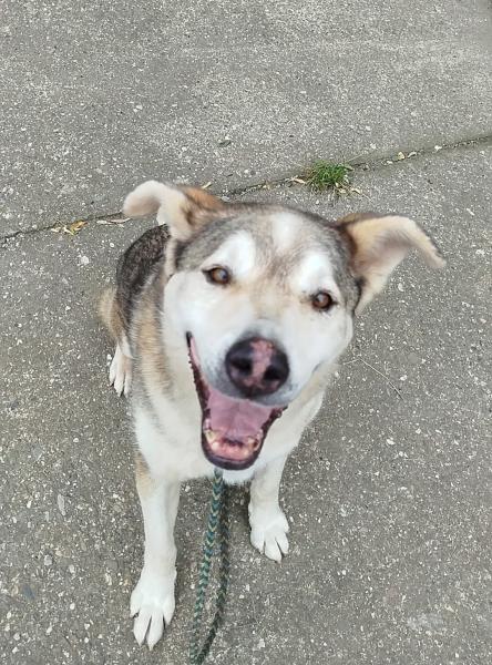 "Bond ist ca 5 Jahre alt und der beste Freund meines Mannes, obwohl mit 70cm Schulterhöhe und 40kg ein großer Kerl ist er sehr sanft im Umgang, freundlich, lustig und absolut vertrauenswürdig."