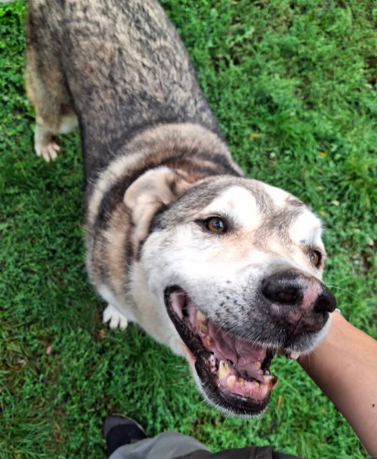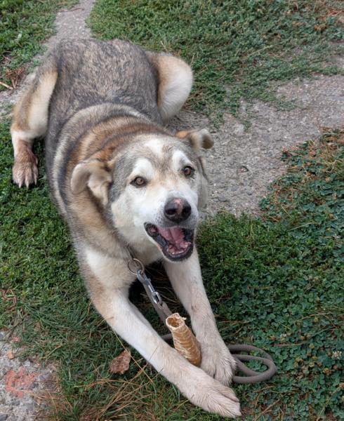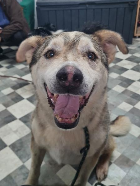 "Bond ist ca 6 Jahre alt und der absolute Schatz des Shelters, obwohl mit 70cm Schulterhöhe und 42 kg ein großer Kerl ist er sehr sanft im Umgang, freundlich, lustig und absolut vertrauenswürdig."
