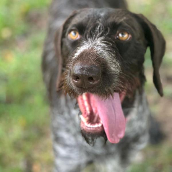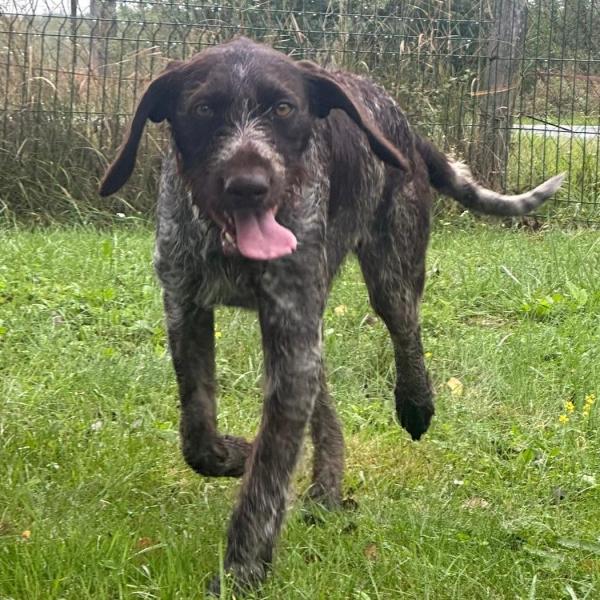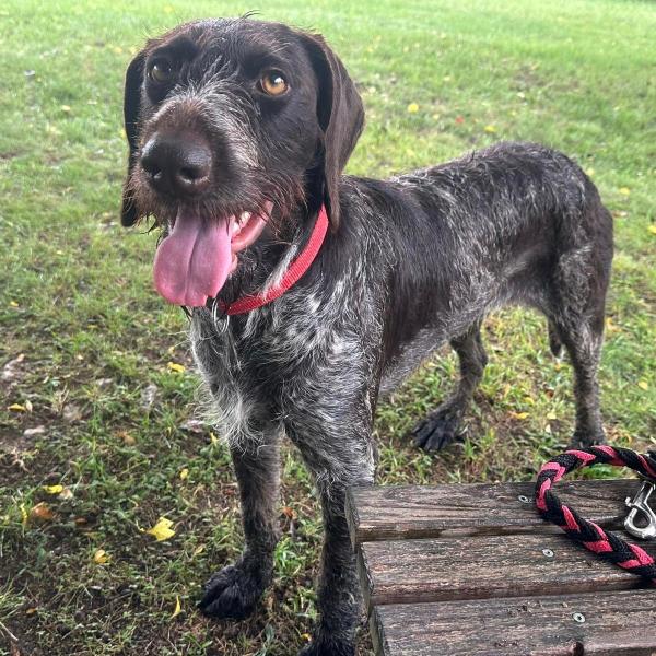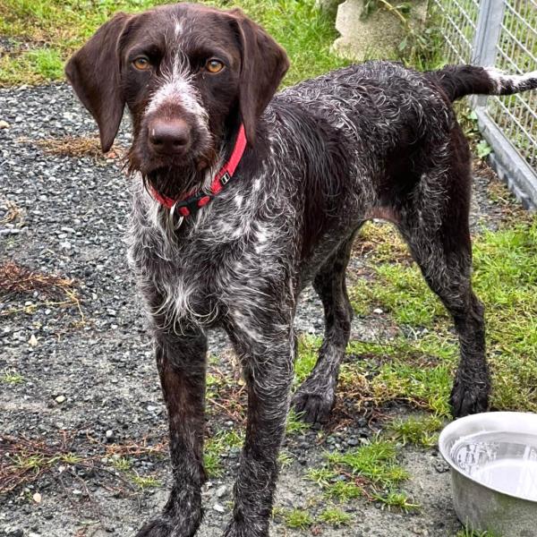Brenda wurde im Wald ausgesetzt und zum Glück von Tierschützern gefunden. Sie ist eine sehr freundliche, offene und absolut menschbezogene Hündin. Mit ihren Artgenossen kommt sie gut klar, wichtig ist ihr aber vor allem der Kontakt zum Menschen. Wir vermuten, dass Brenda eine Deutsche Drahthaar-Hündin ist. Rassetypisch bringt sie ihre feine Nase natürlich gerne zum Einsatz.