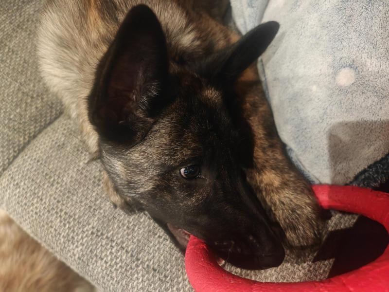 Hündin. Sie hat viel Energie und möchte geistig wie körperlich gefördert werden,