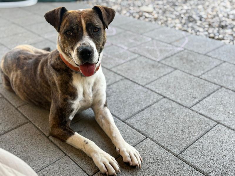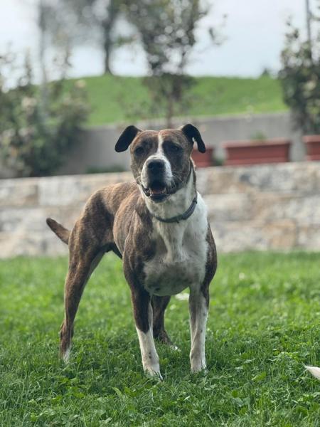 Eleni (01.05.21) ist unsere bezaubernde Pitbull-Mischlingshündin, die mit ihrer stürmischen Art und ihrem unwiderstehlichen Charme jeden Tag zu einem Abenteuer macht. Wenn du auf der Suche nach einer neuen besten Freundin bist, die dich mit ihrer Neugier und Lebensfreude ansteckt, dann hast du sie gefunden.