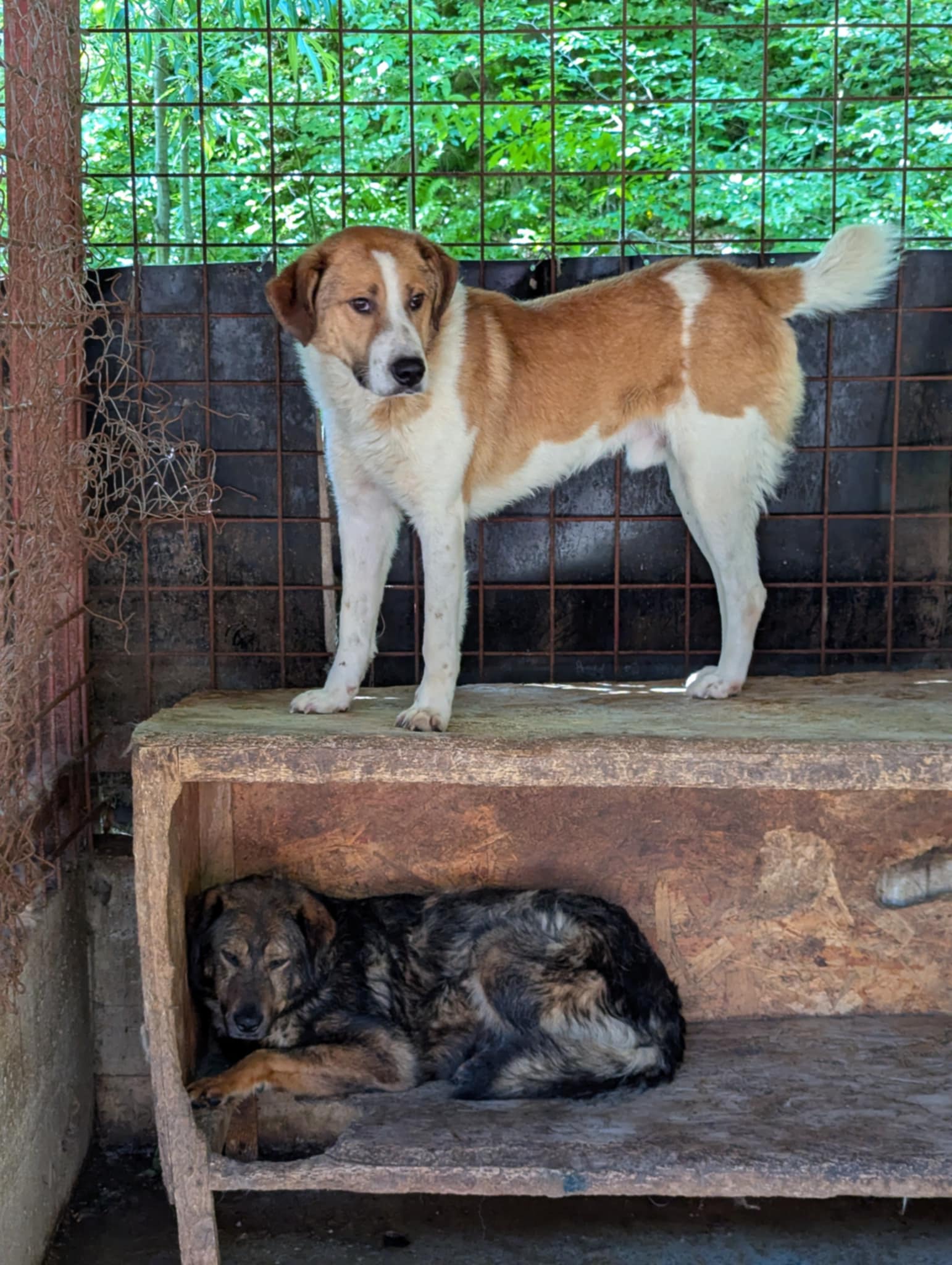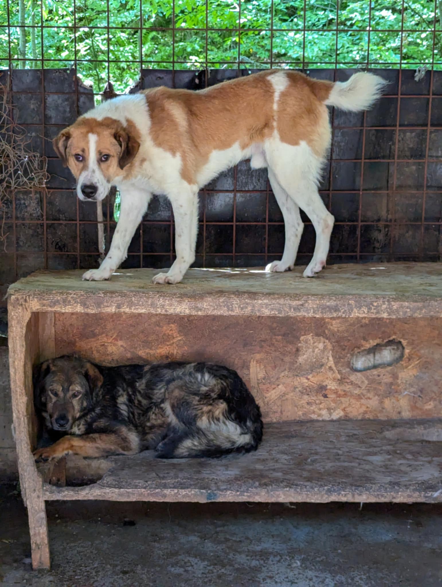Der 5 jährige Rüde mit den sanften braunen Augen war ganz in sich gekehrt als wir ihn in der Tötung sahen. Er freundete sich dort mit dem lieben Cody an und zusammen gaben sie sich ein wenig Sicherheit. Beide Fellnasen konnten gerettet werden und sind nun in einem sicheren privaten Shelter.
