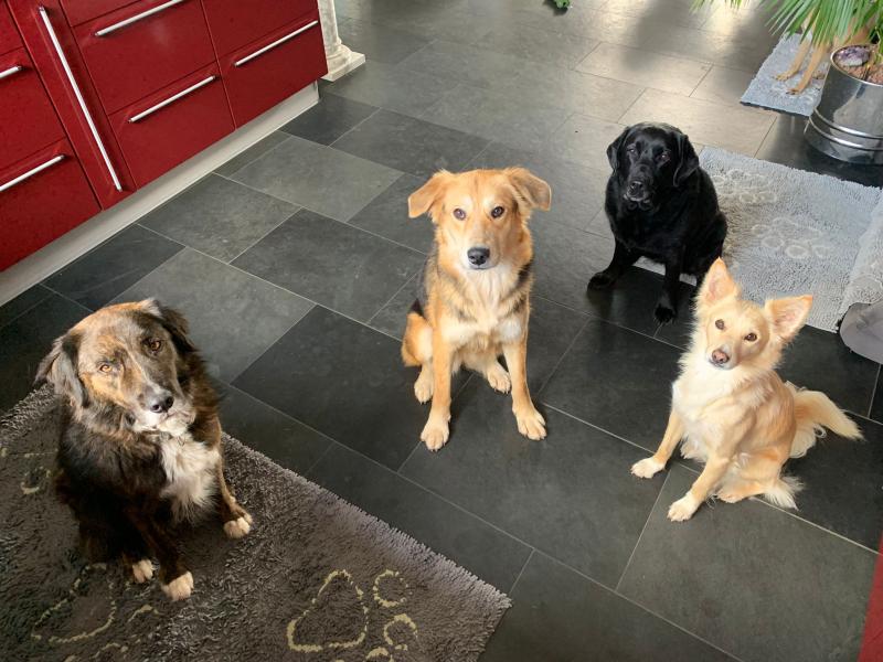 Fly wurde von unserem 6 köpfigen Hunderudel gut aufgenommen und meistert die neue Situation prima.