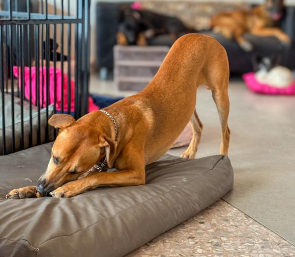 Hier im Hundesitting hat er etwas Mühe sich zu regulieren wenn sich die Aufregung/ Energie der anderen Hunde ändert (wenn Hunde gebracht oder abgeholt werden). In solchen Fällen muss er an seine Grenzen erinnert werden, was er aber gut akzeptiert. Cooper braucht sinnvolle Beschäftigung wie z.B. Mantrailing, Fährtenarbeit, Canicross (allgemein Zughundesport), lange Wanderungen, Unterordnung (..) Er lernt sehr schnell und ist eigentlich für alles zu begeistern. Thematik Ressourcenverteidigung; bei Futter und Spielzeugen reagiert er auf andere Hunde, kann aber auch in solchen Situationen gut „gehändelt“ werden. Gegenüber uns Menschen zeigt er dieses Verhalten jedoch nicht und auch im Spiel mit beispielsweise einer Beisswurst, gibt er diese wiederstandslos auf das Kommando „aus“ her und zeigt dort auch eine gute Impulskontrolle. Zu Hause ist er ein angenehmer Zeitgenosse der gut auf seinem zugewiesenem Platz ruhen kann. Cooper sucht aktive, sportliche Menschen die bereit sind weiter an der Erziehung zu arbeiten und wo er weiterhin entsprechend gefördert wird."